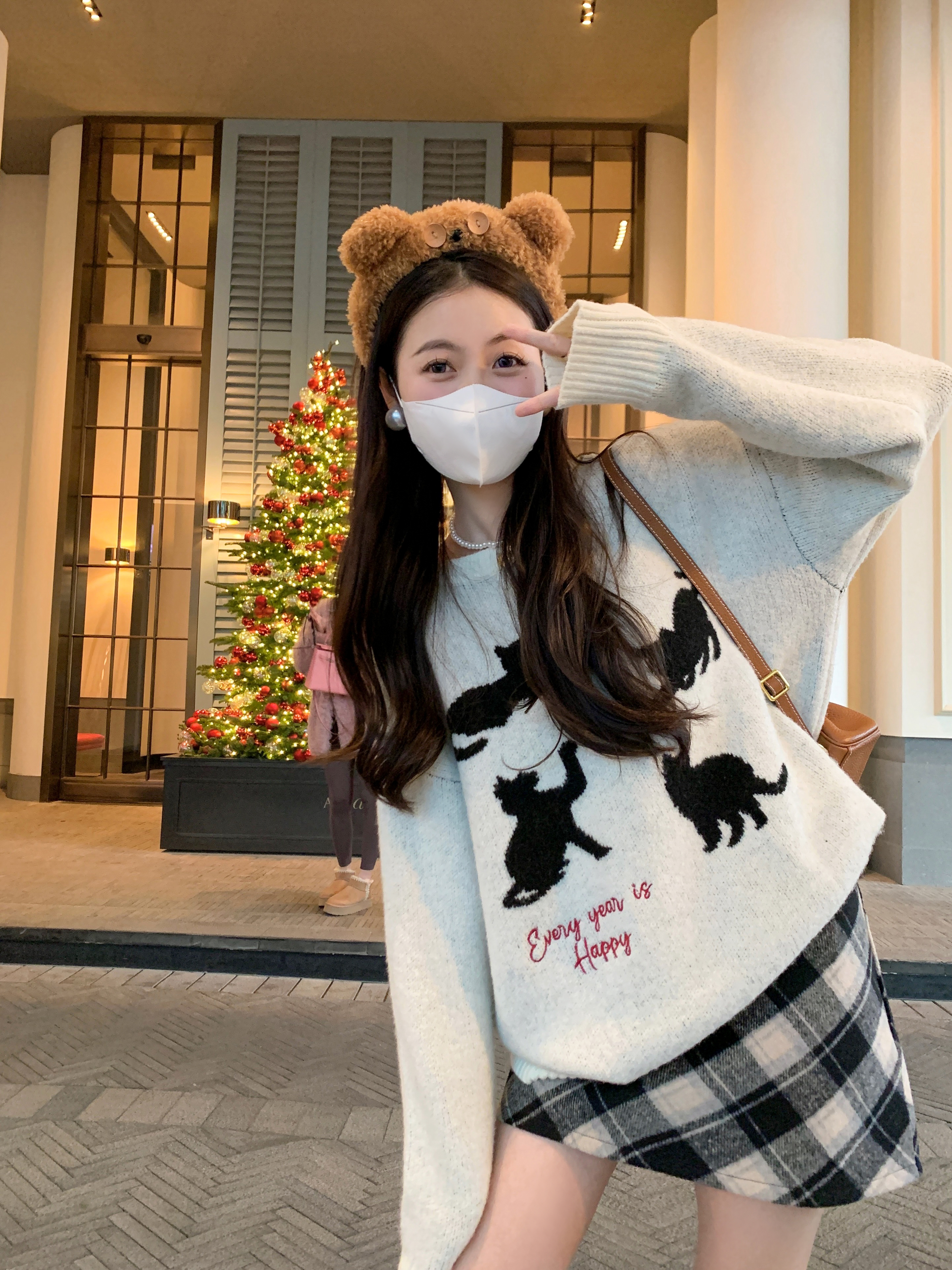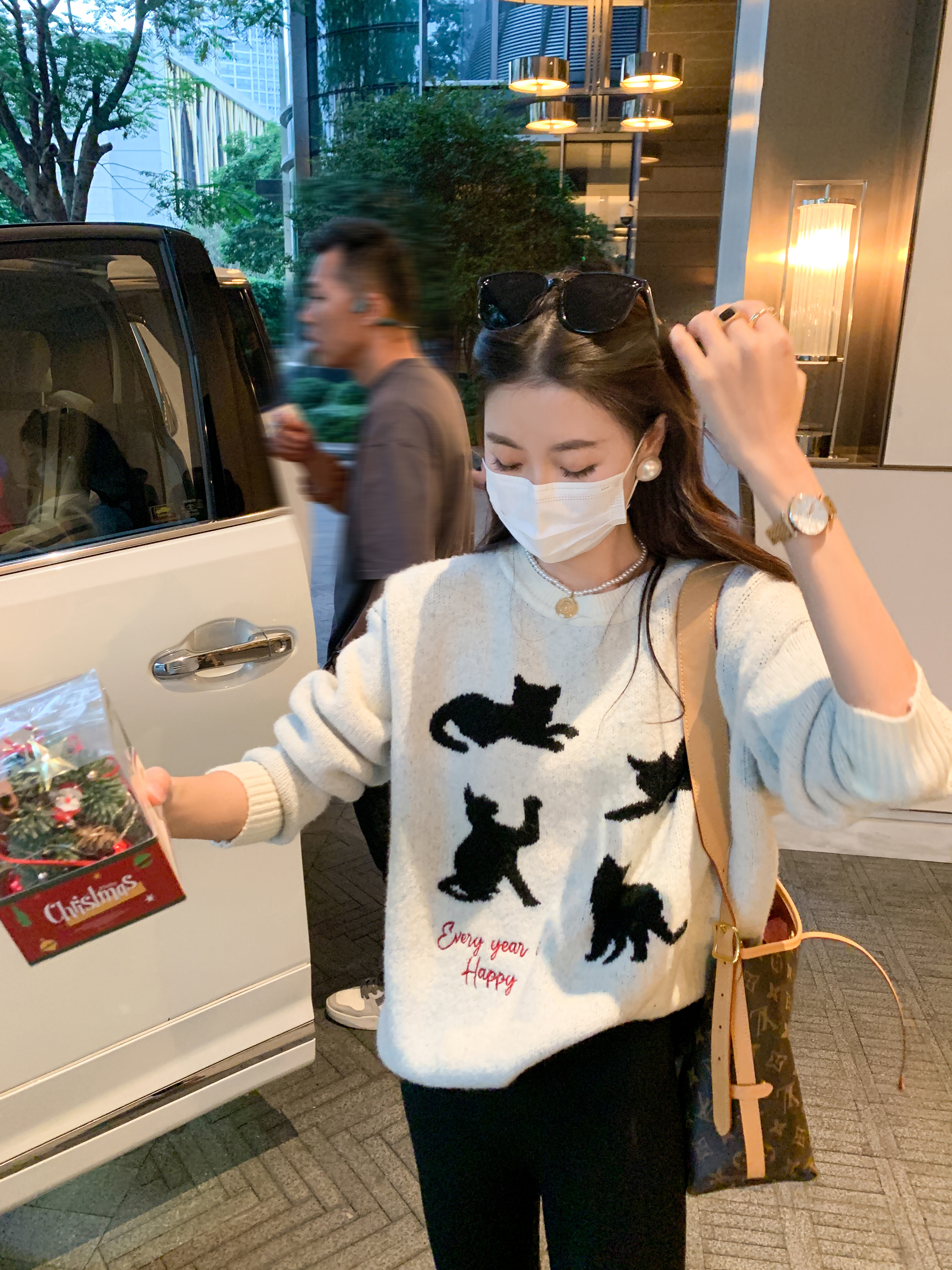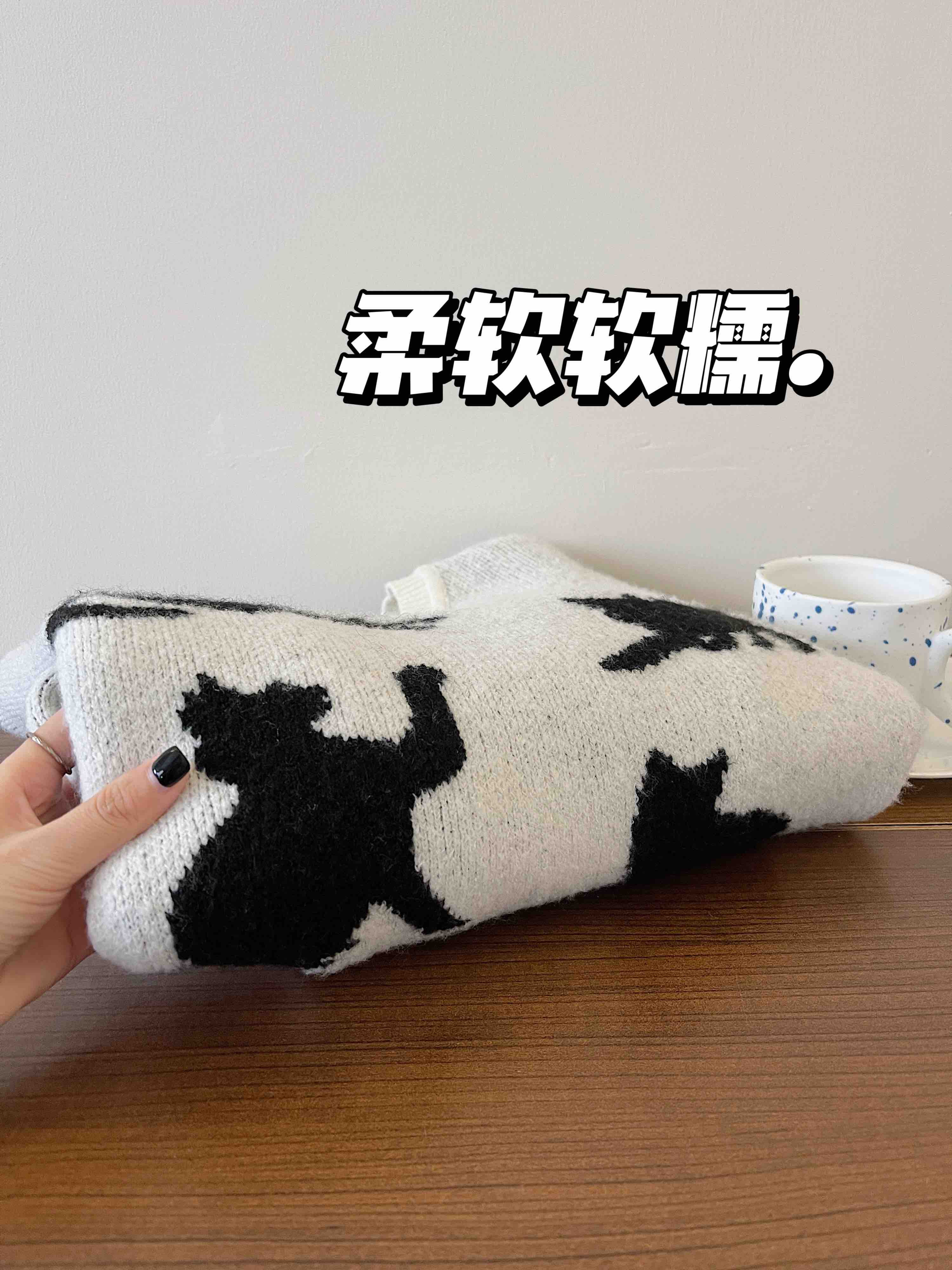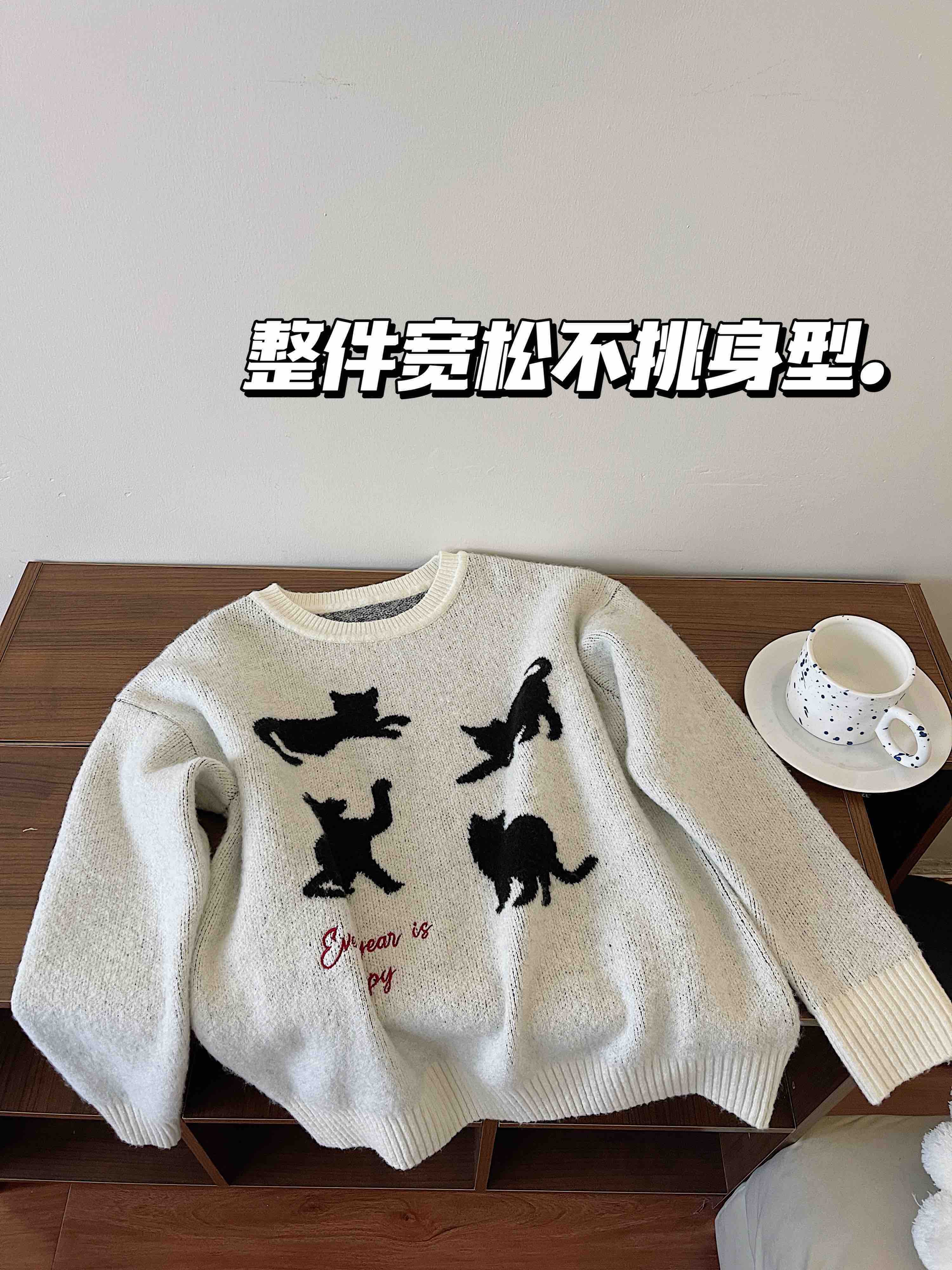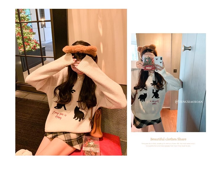 <曾小咸推荐> 黑色猫咪绣花毛衣