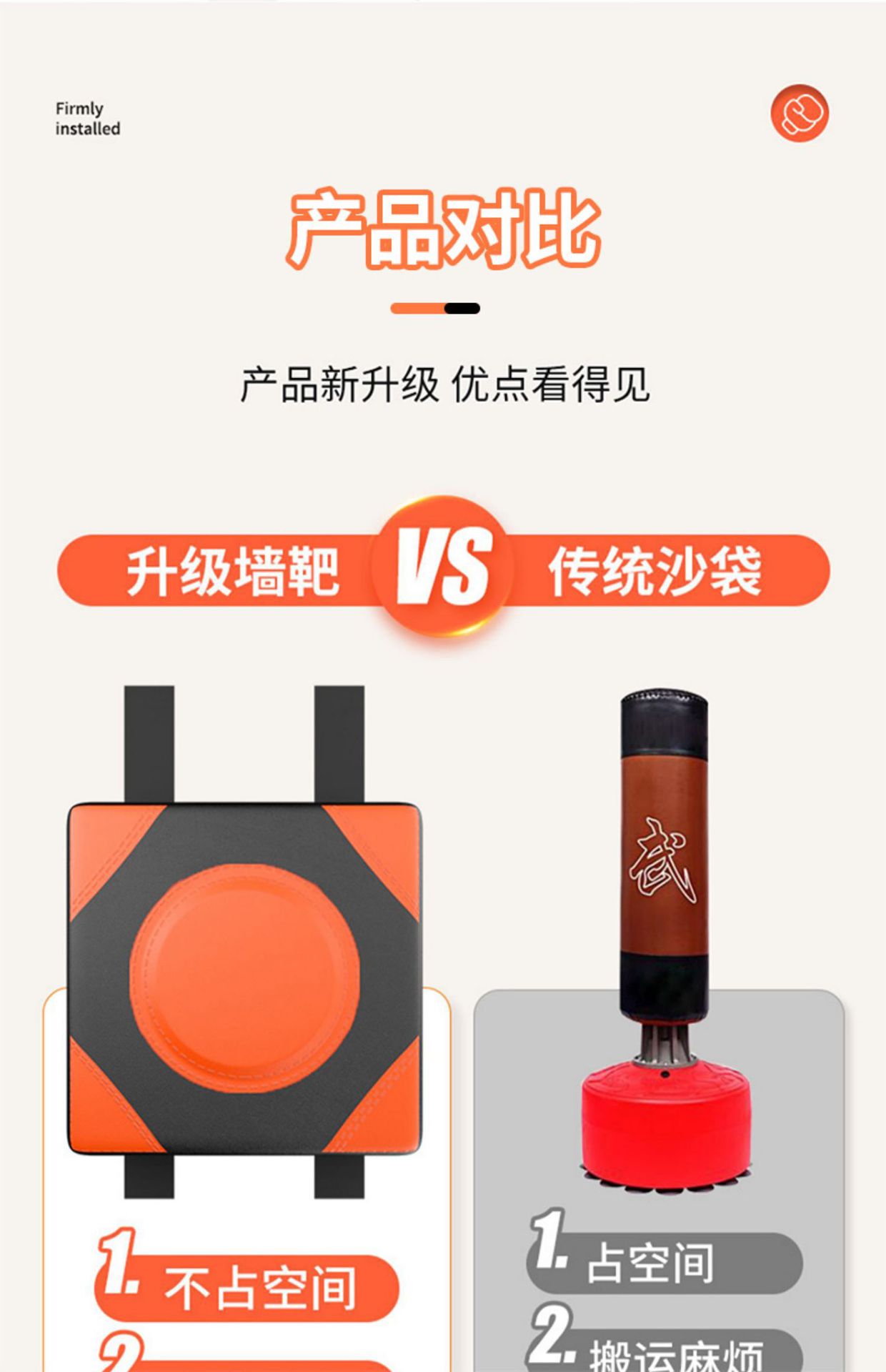 【全家适用】拳击靶墙上揍,人生轻松又舒畅;加厚细节,耐用质感;儿童训练,孩子成长好帮手;安装方便,随时开始挥拳;静音设计,不扰民!
