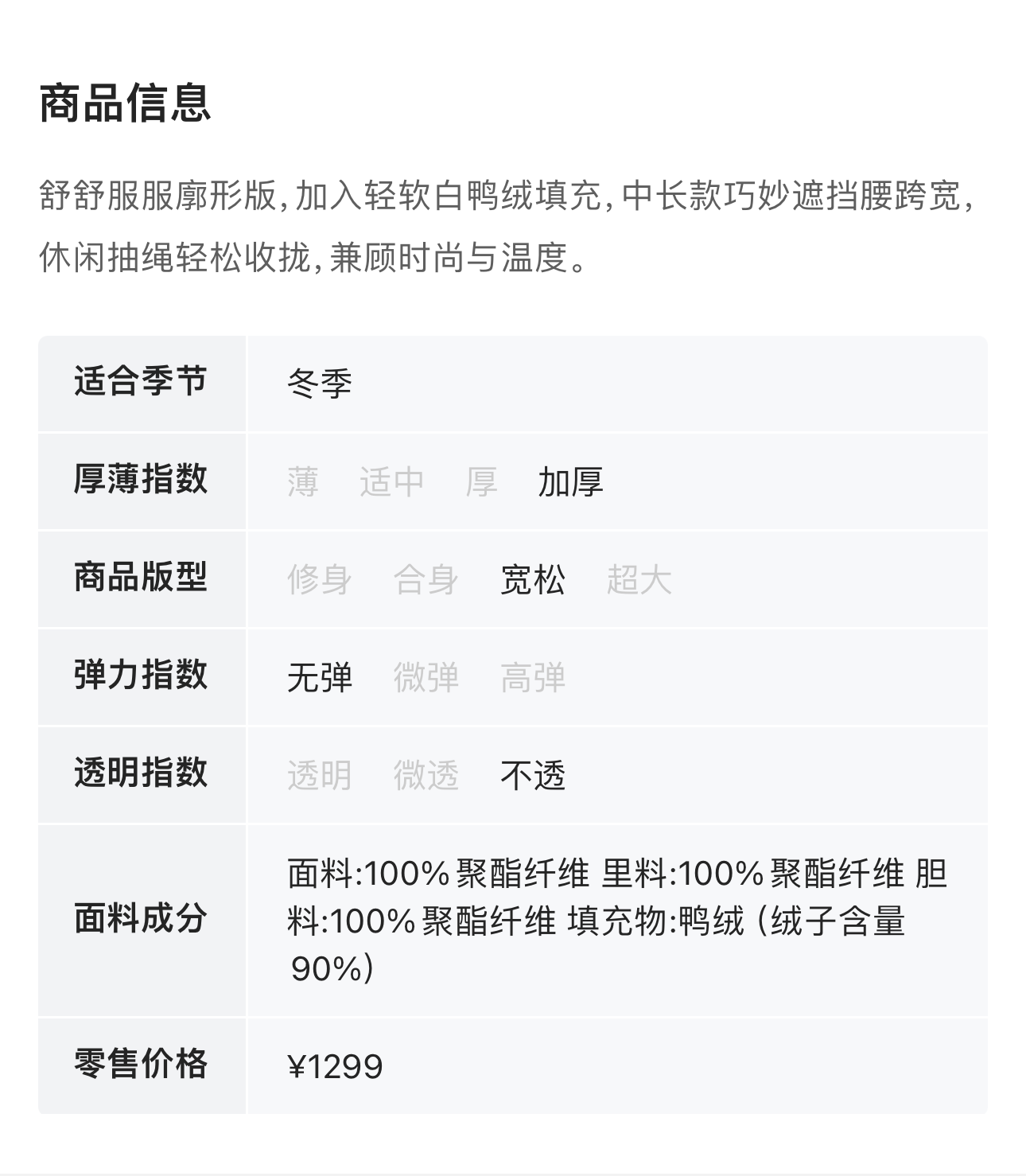 LNNNS 减龄连帽收腰白鸭绒羽绒外套 19475