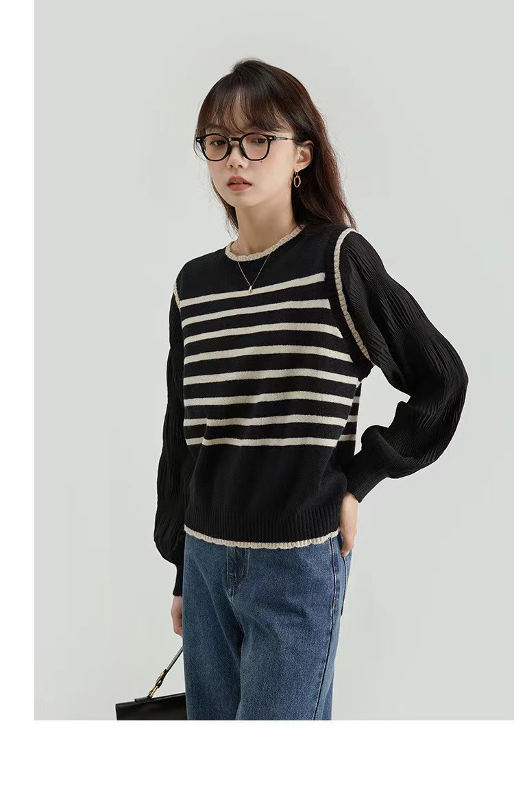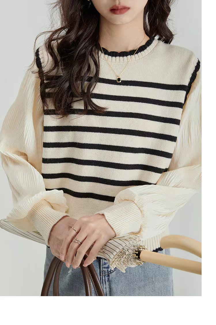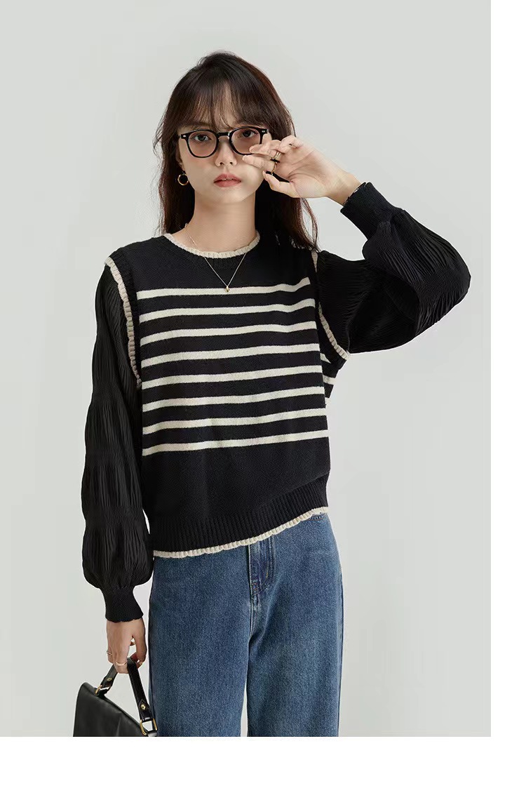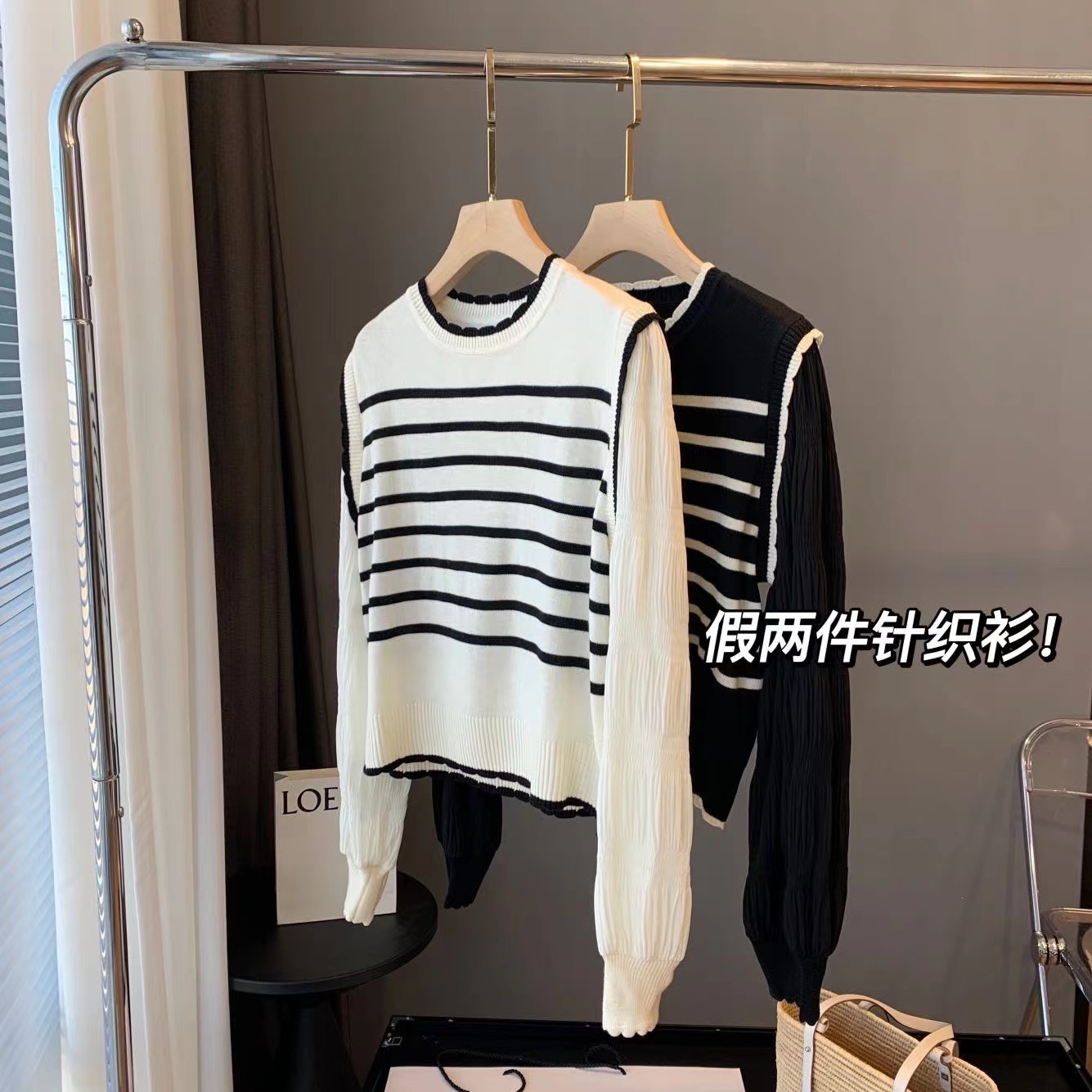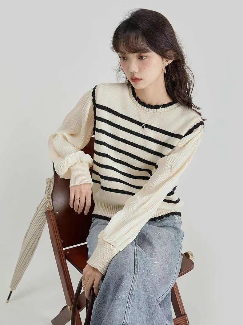 这是一款条纹背心拼接衬衫袖的小衫上身有种轻复古的感觉,就是说一整个爱住了!