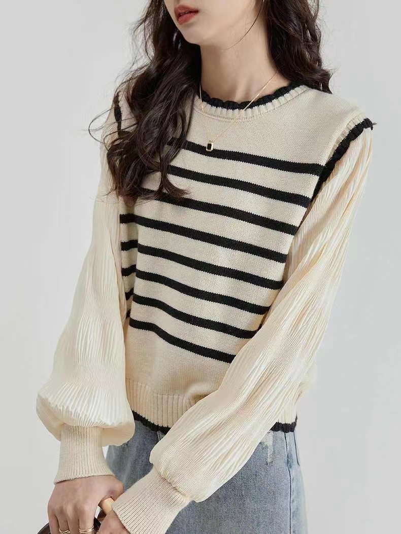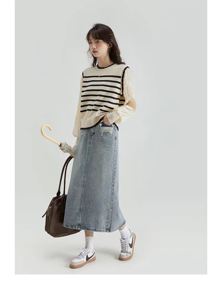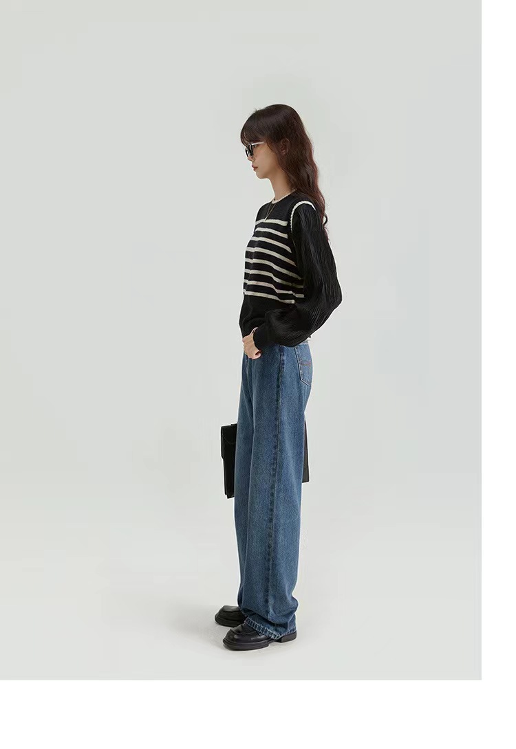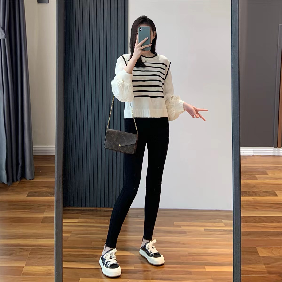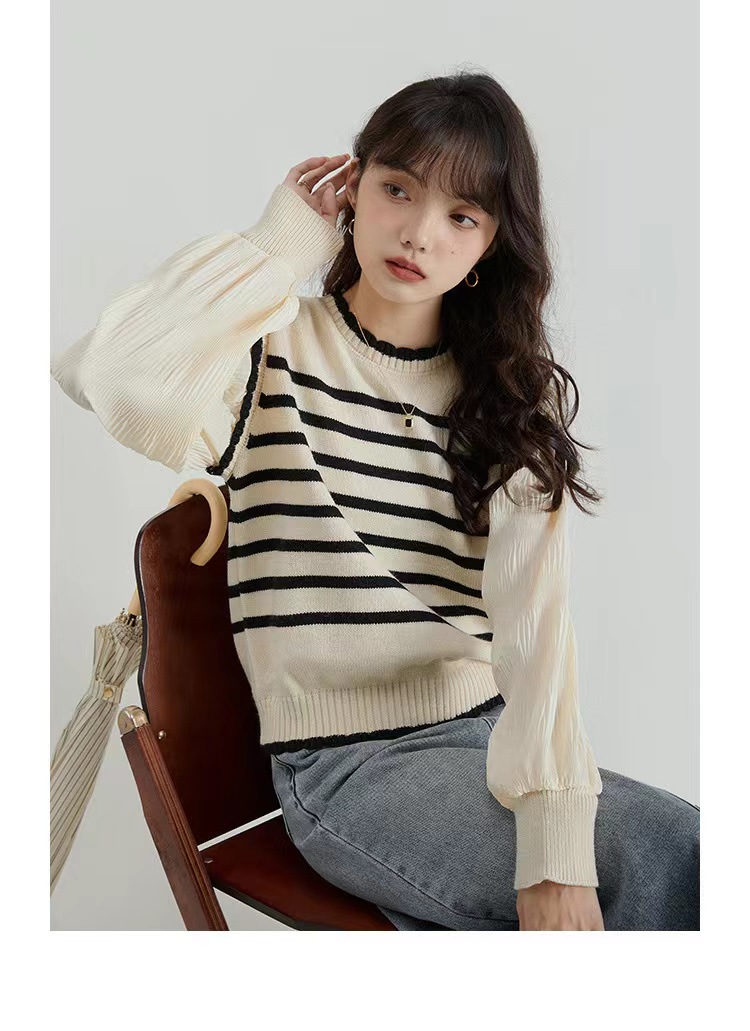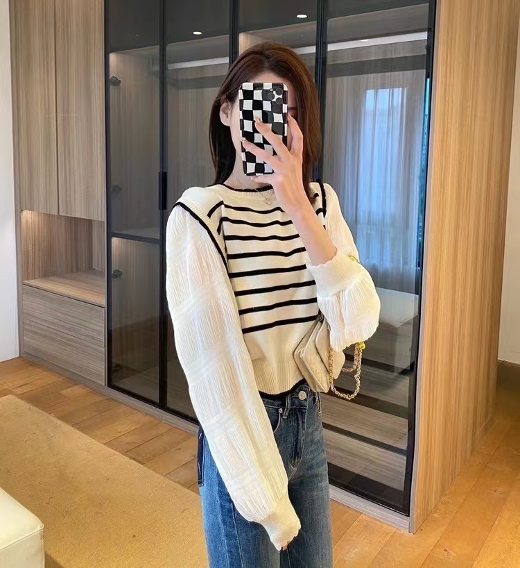 这是一款条纹背心拼接衬衫袖的小衫上身有种轻复古的感觉,就是说一整个爱住了!