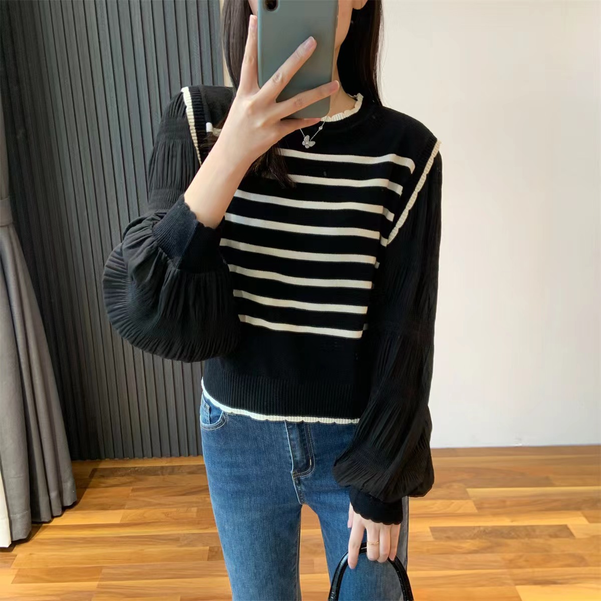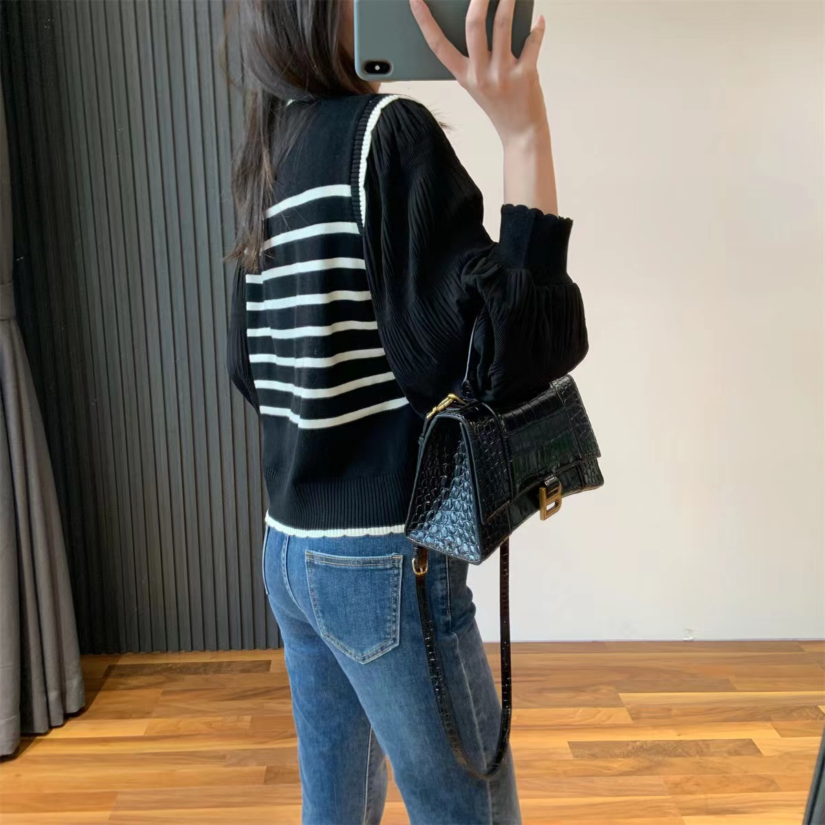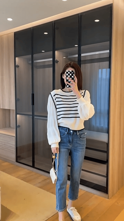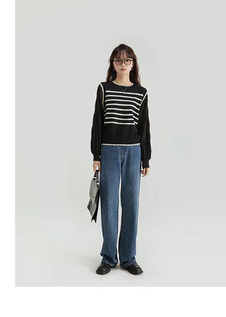 条纹的洋气又百搭质量和做工好性价比高,气质的毛衣百搭时尚~面料软软糯糯的,上身舒适, 搭配裙子,裤子都好看的~