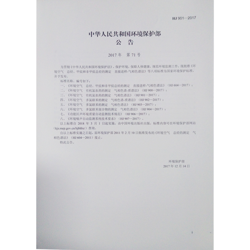 HJ901-2017 环境空气 有机氯农药的测定 气相色谱法