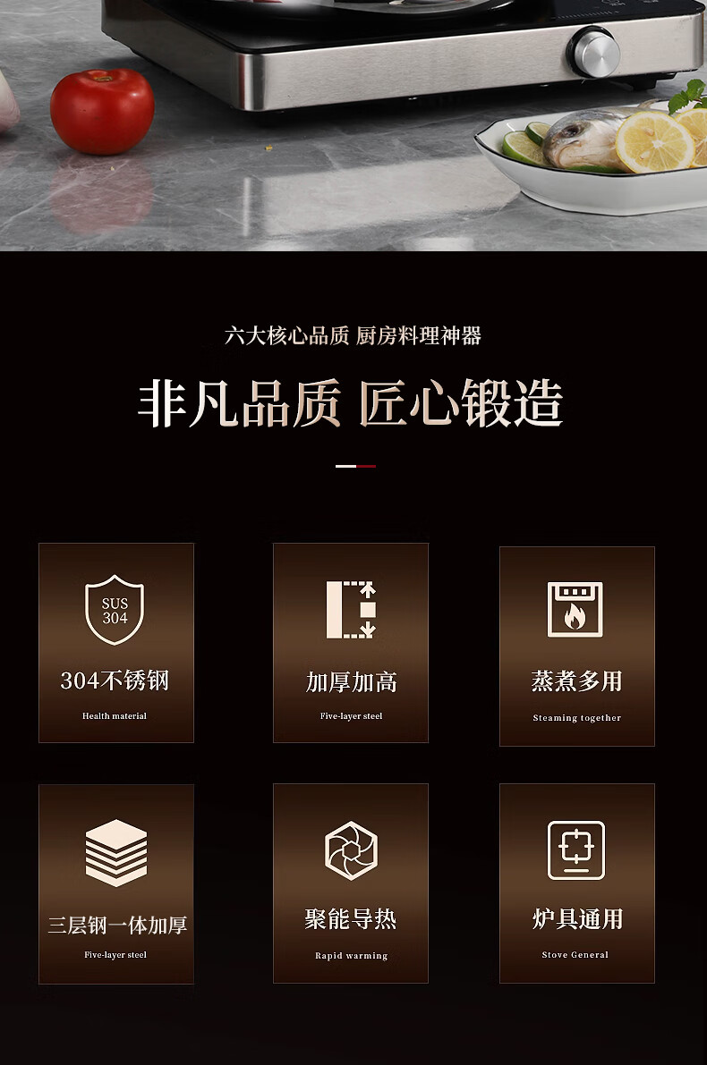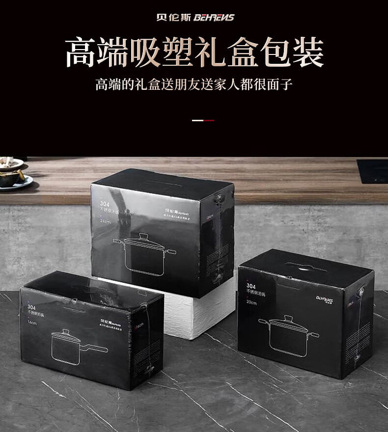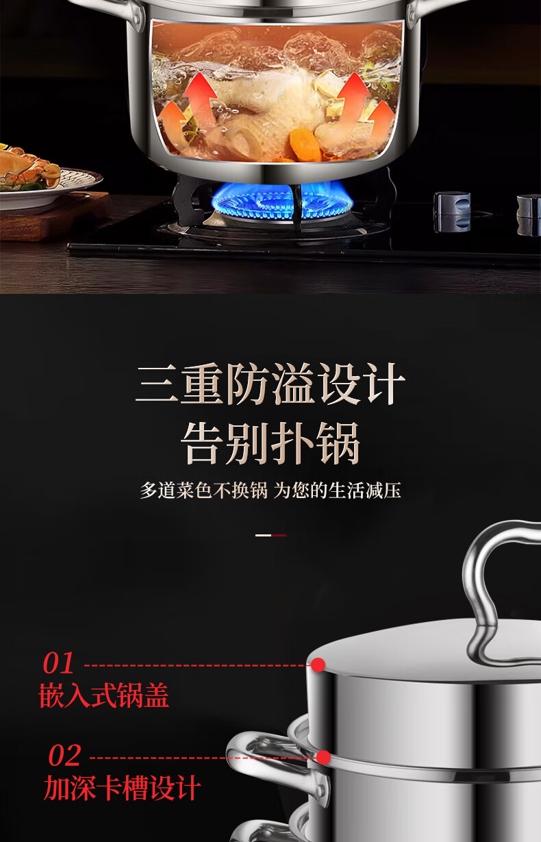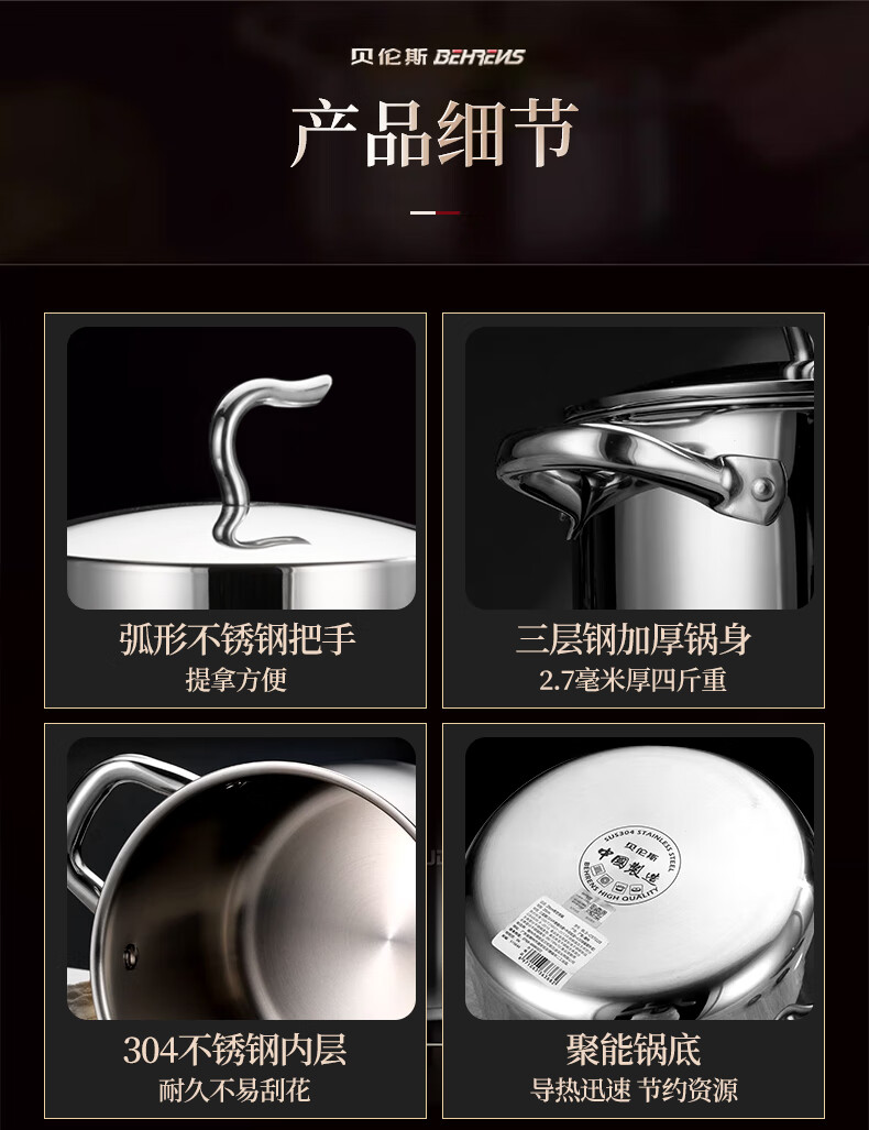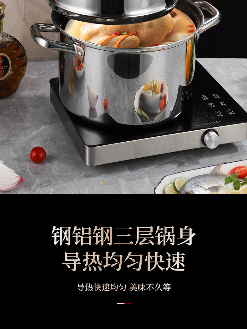 贝伦斯304不锈钢蒸锅燃气灶电磁炉馍馒头包子蒸锅家用蒸煮两用加厚三层