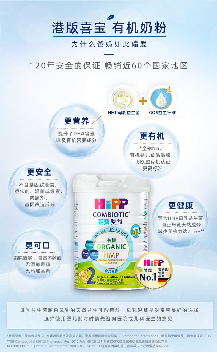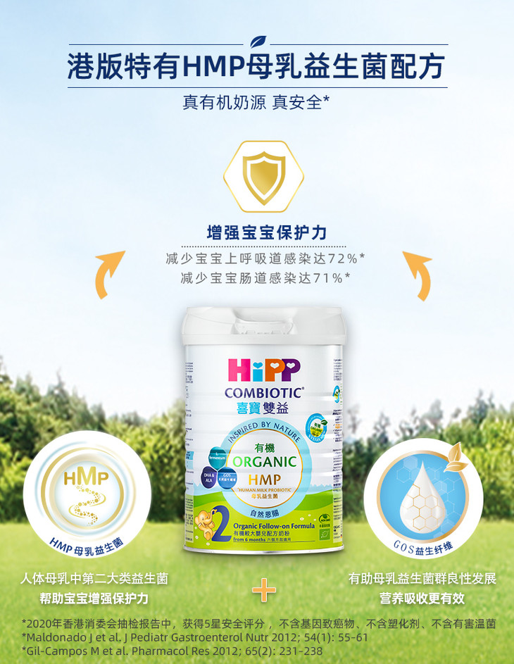 【保税区】港版HiPP喜宝有机双益HMP较大婴儿奶粉2段 800g/罐