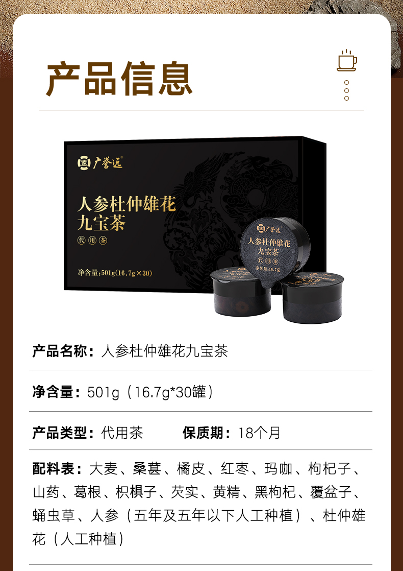 人参杜仲雄花九宝茶501g(16.7g×30罐)
