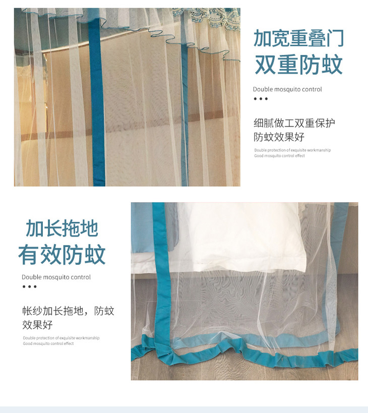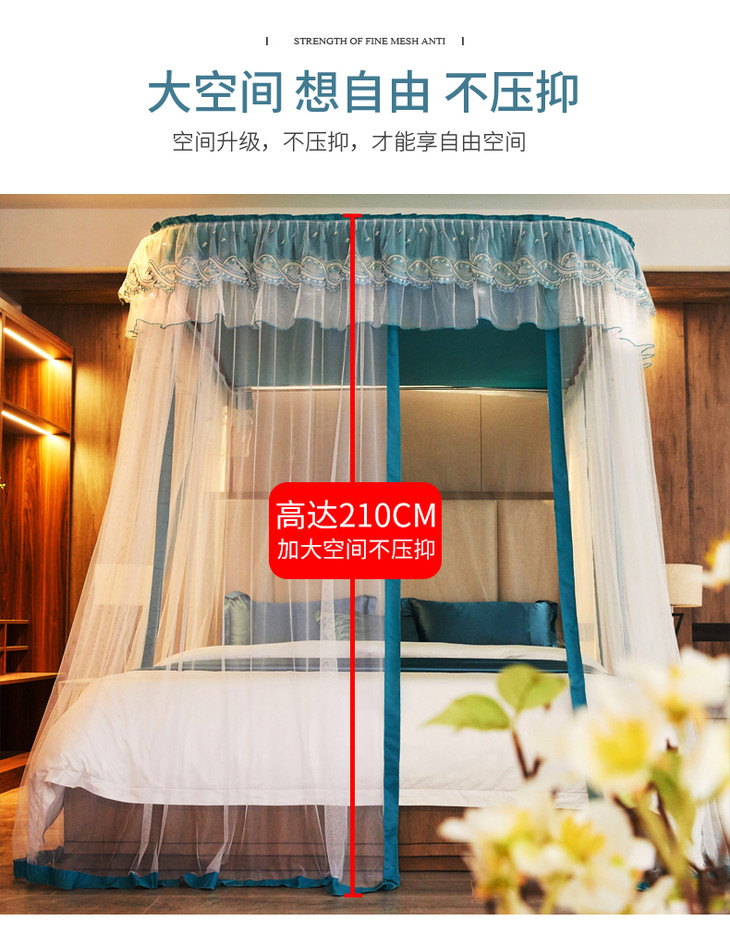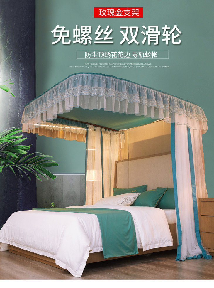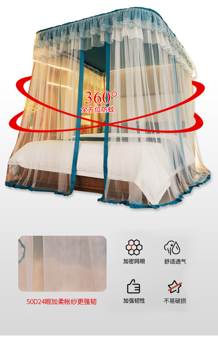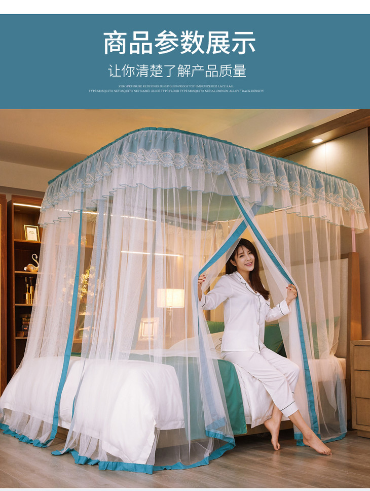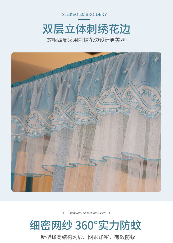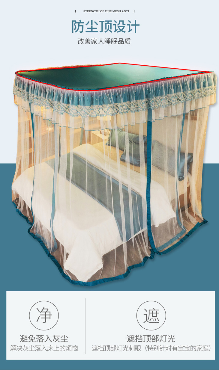 自然醒防尘顶绣花花边导轨款蚊帐HH