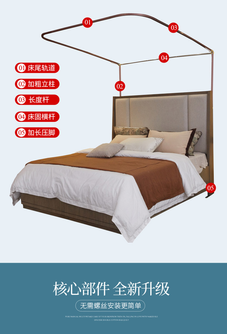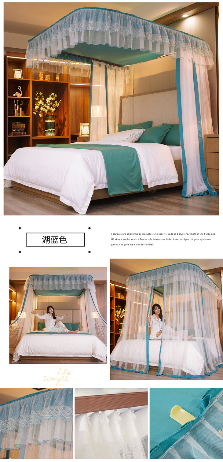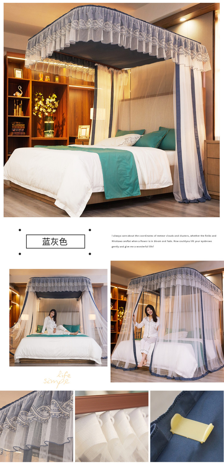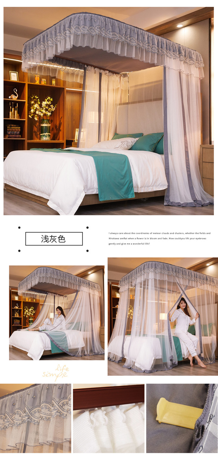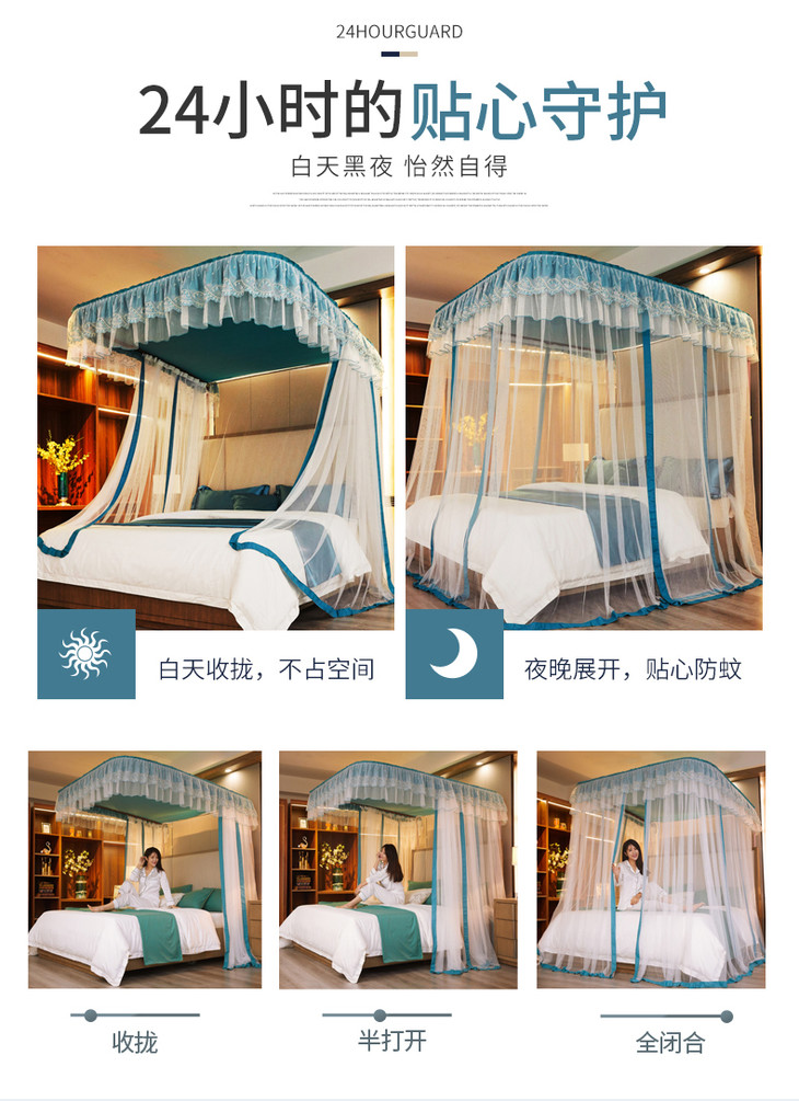自然醒防尘顶绣花花边导轨款蚊帐HH