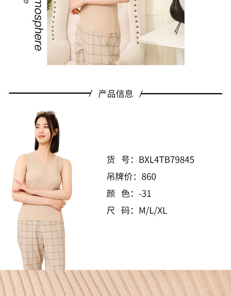 宗洋zongyang女装2022春夏新品百搭针织打底衫吊带背心BCL4TB7845-31