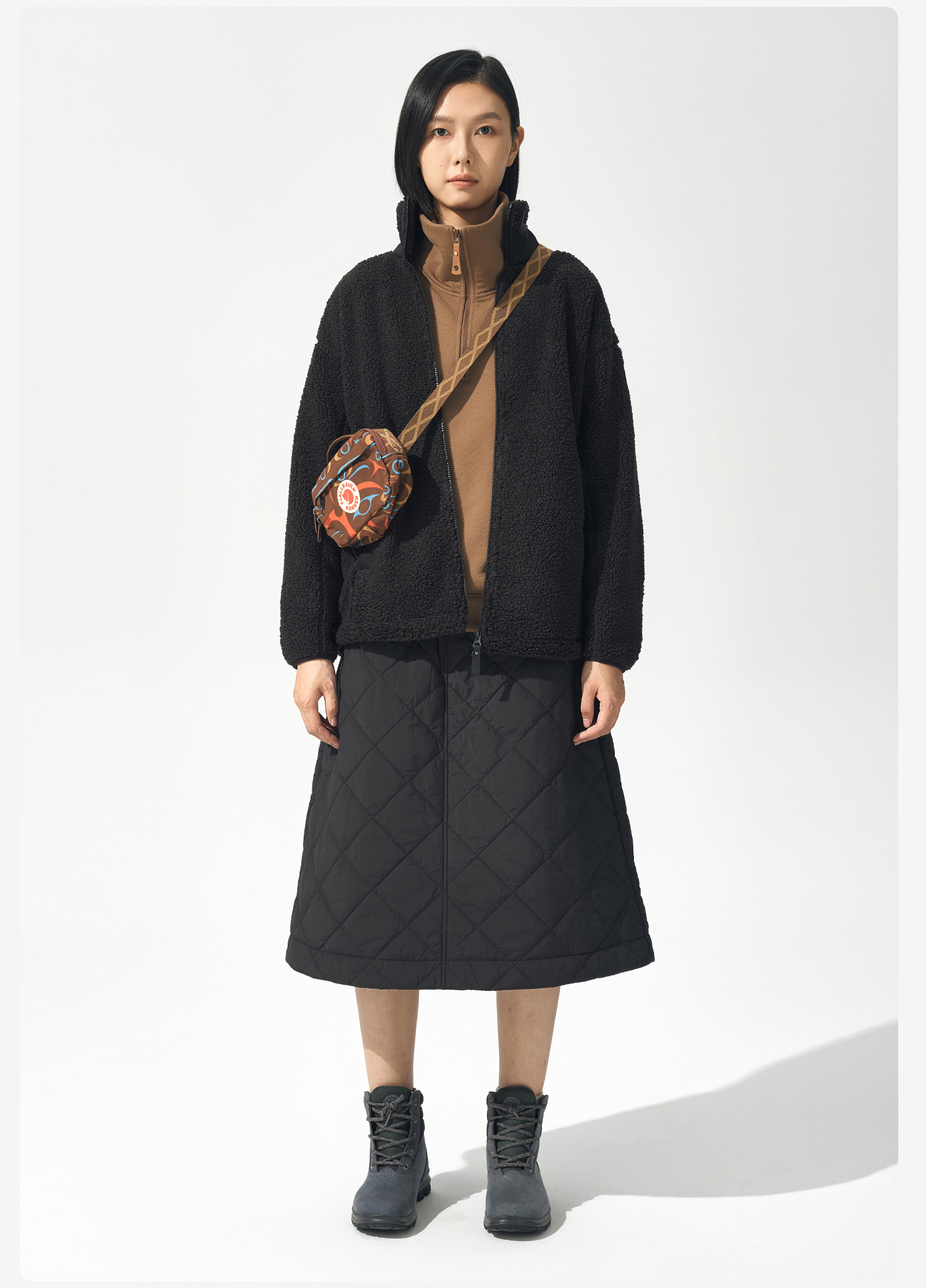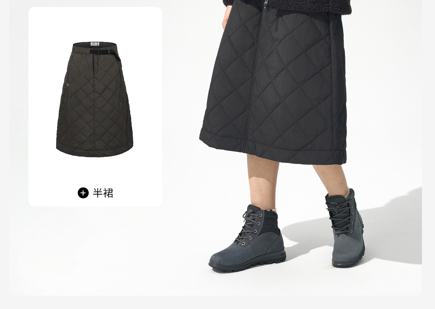 北极狐女士户外柔软舒适百搭保暖格子半身A字裙 05232210