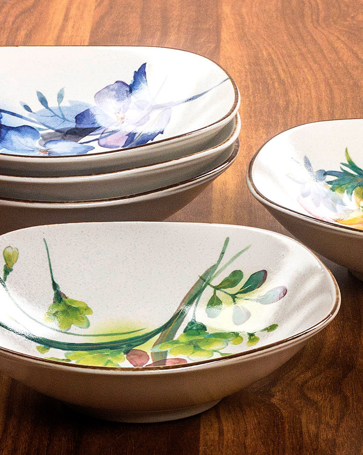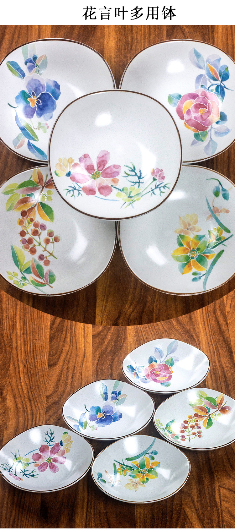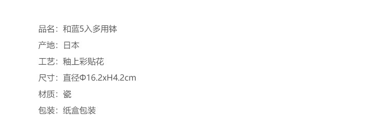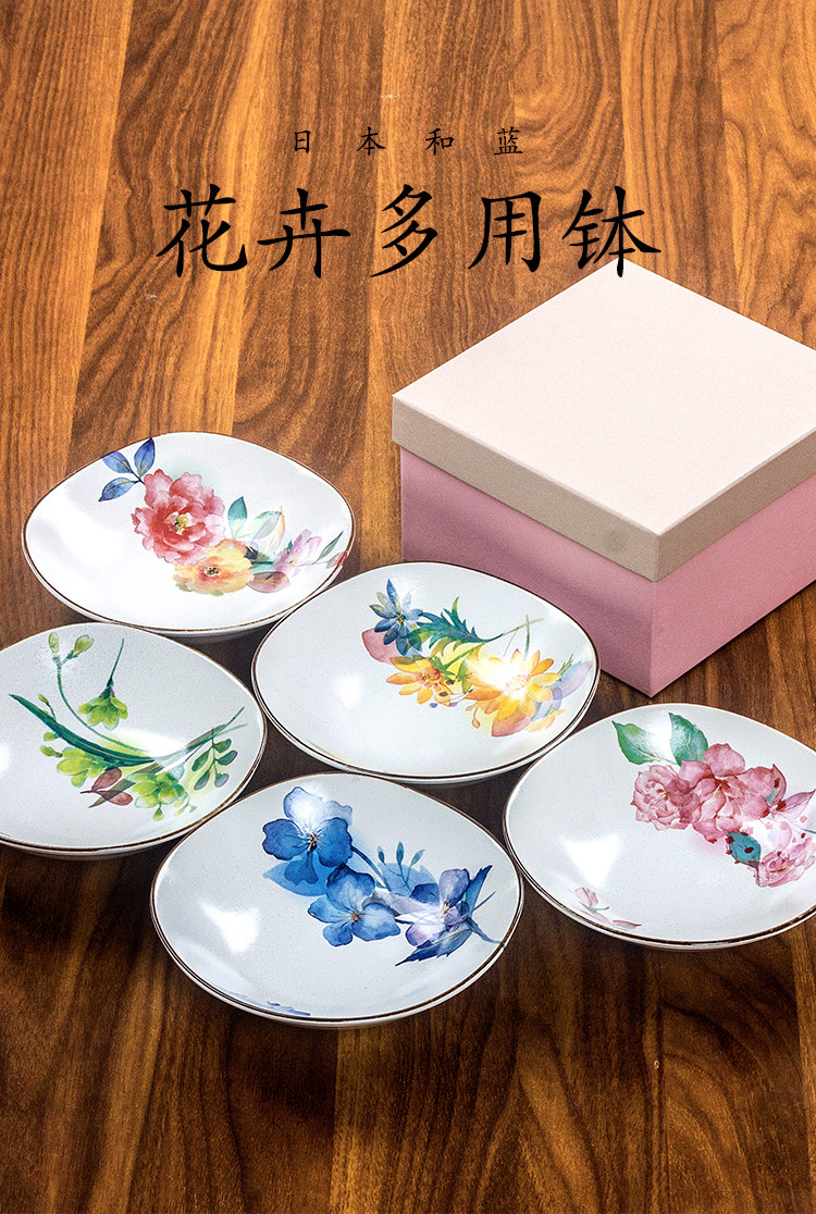 【预售】日本和蓝家用日式花卉质朴哑光陶瓷方形深盘装菜盘水果盘多用钵和蓝虹彩花5入多用钵16.2*16.2*4.5cm2入汤碗14.6*17.7*15.5cm5入碗13.2*12.2*4.2cm