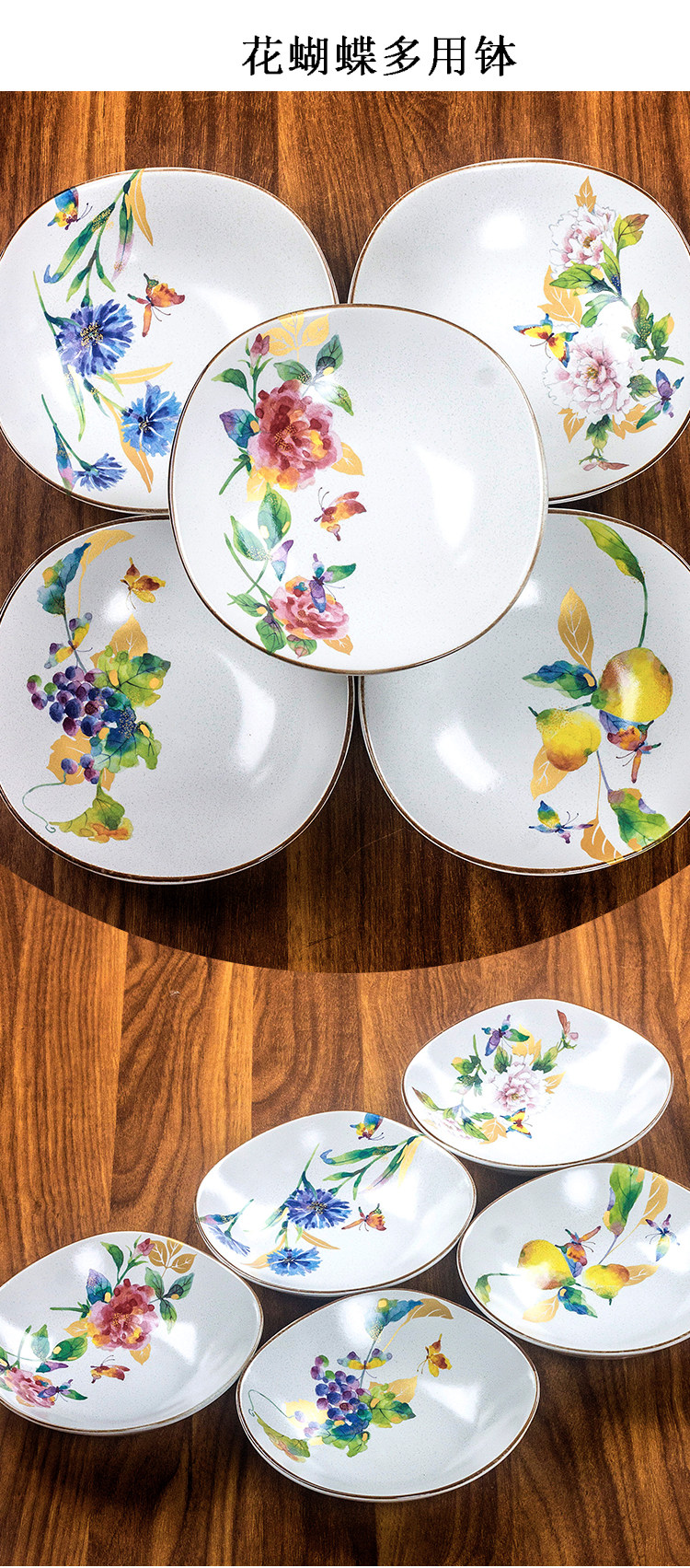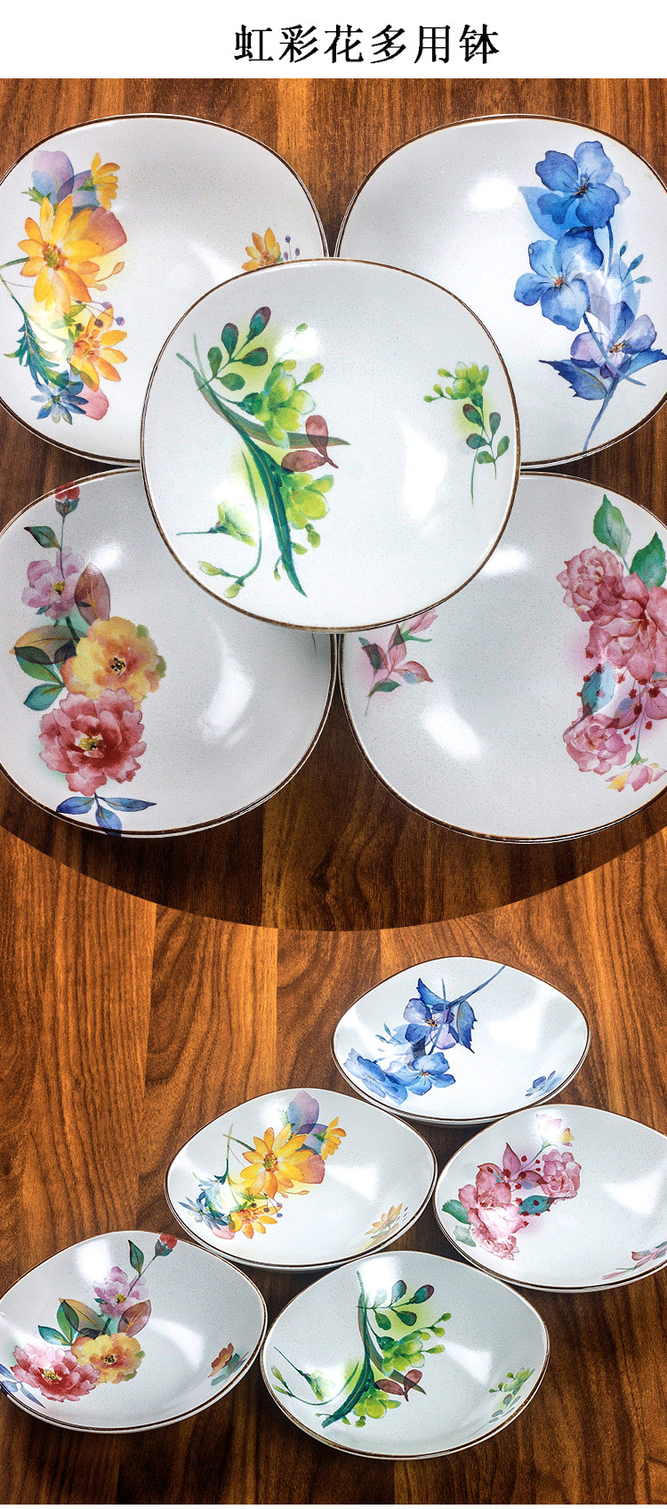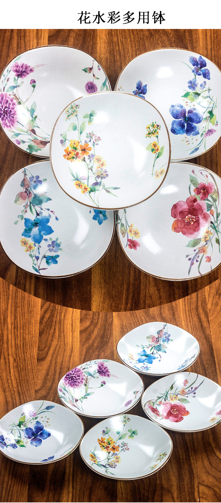 【预售】日本和蓝家用日式花卉质朴哑光陶瓷方形深盘装菜盘水果盘多用钵和蓝虹彩花5入多用钵16.2*16.2*4.5cm2入汤碗14.6*17.7*15.5cm5入碗13.2*12.2*4.2cm