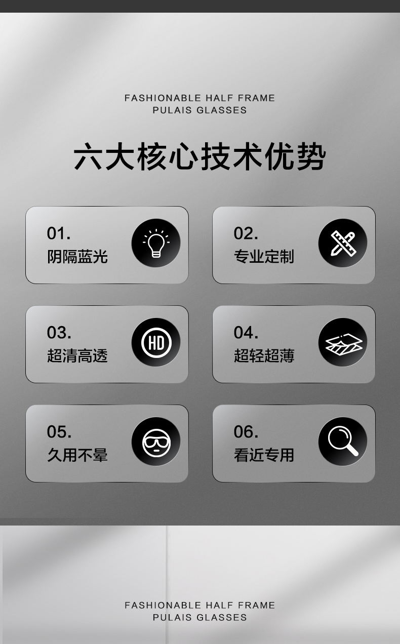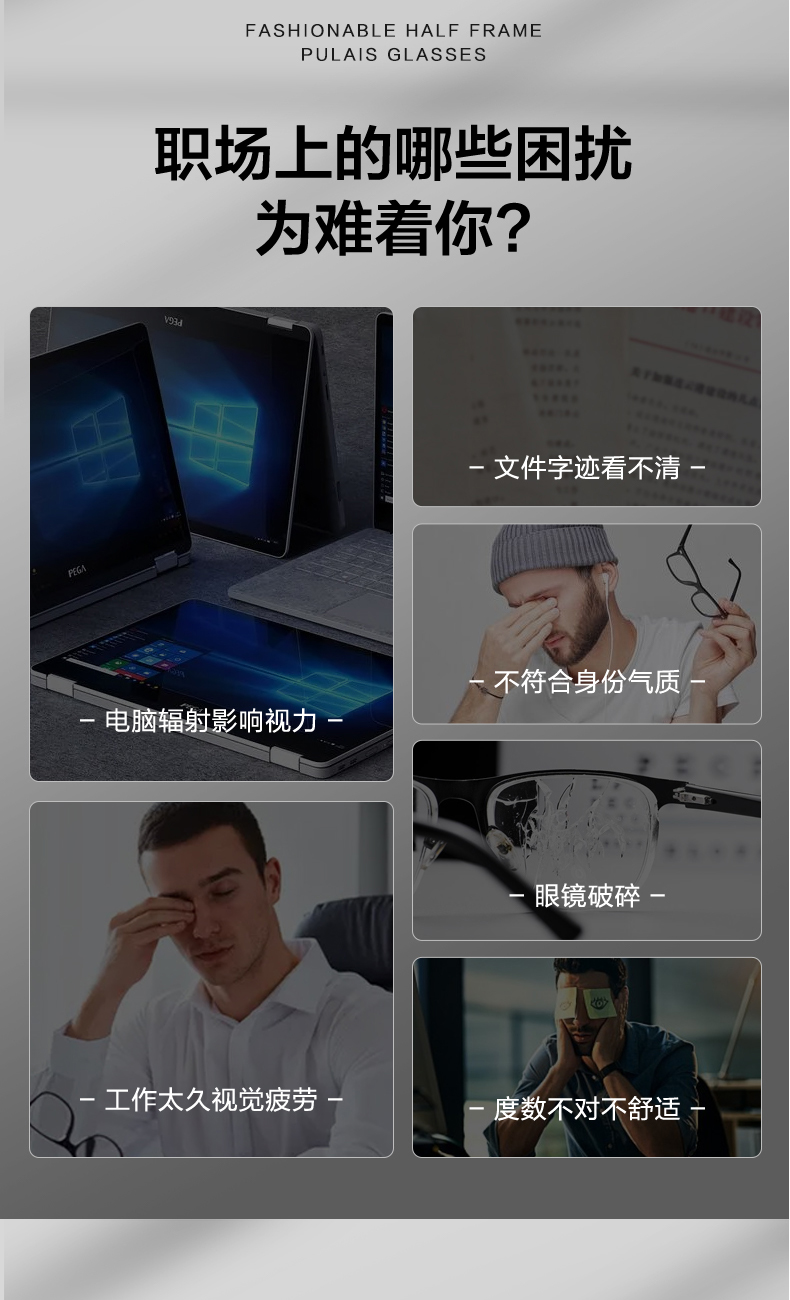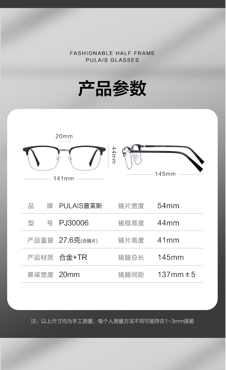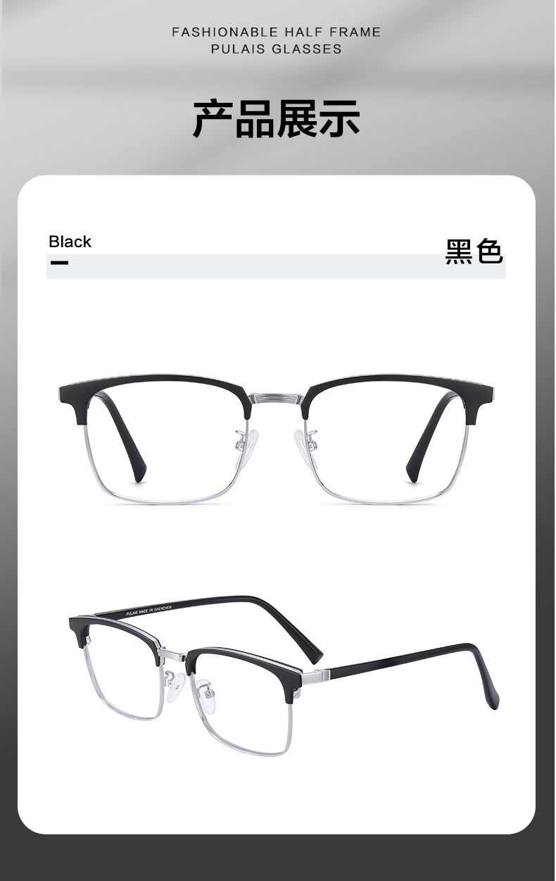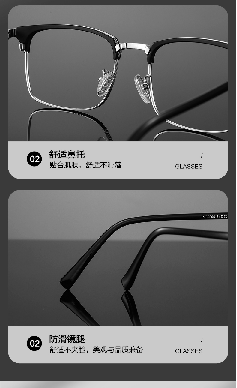 普莱斯光学镜框A6204 经典全框 半钛材质 舒适鼻托 稳固桩头 商务休闲 三色可选