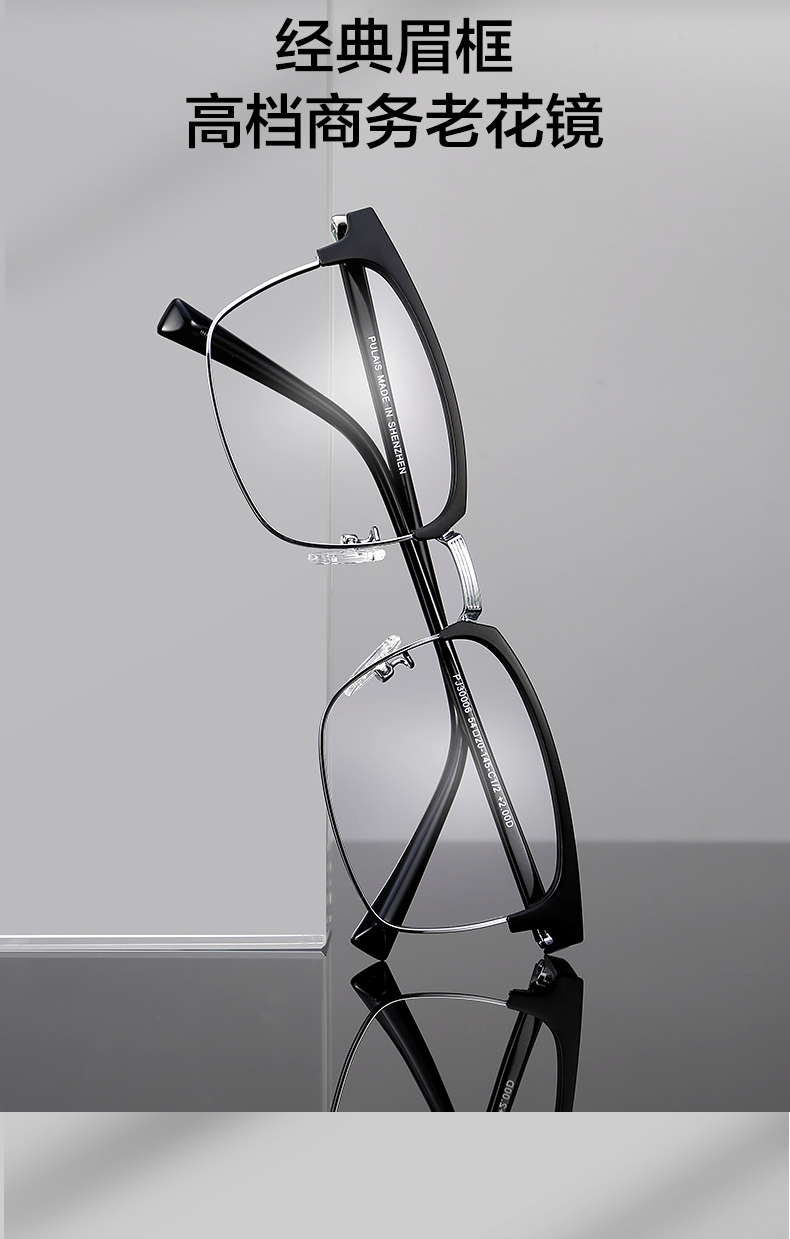 普莱斯老花镜PJ30006 商务款高清防蓝光老花镜 经典眉框 合金+TR
