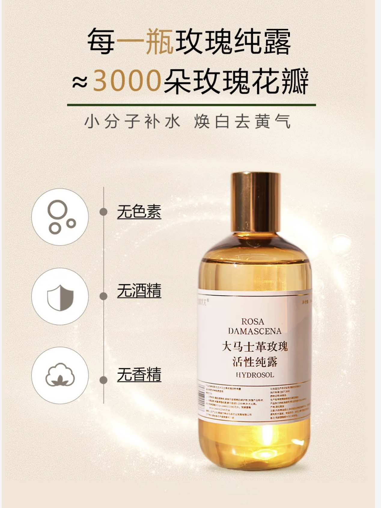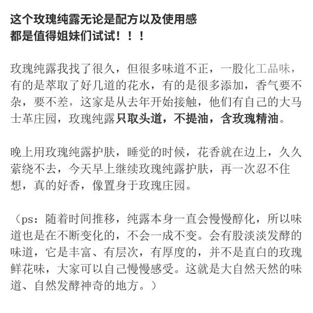 头道纯露/陪伴到老!含有精油的大马士革玫瑰纯露!ding级的食用玫瑰,4斤鲜花1斤水蒸馏萃取,保加利亚官方合作基地纯种种苗,自然农法种植,桃花源中有玫瑰!