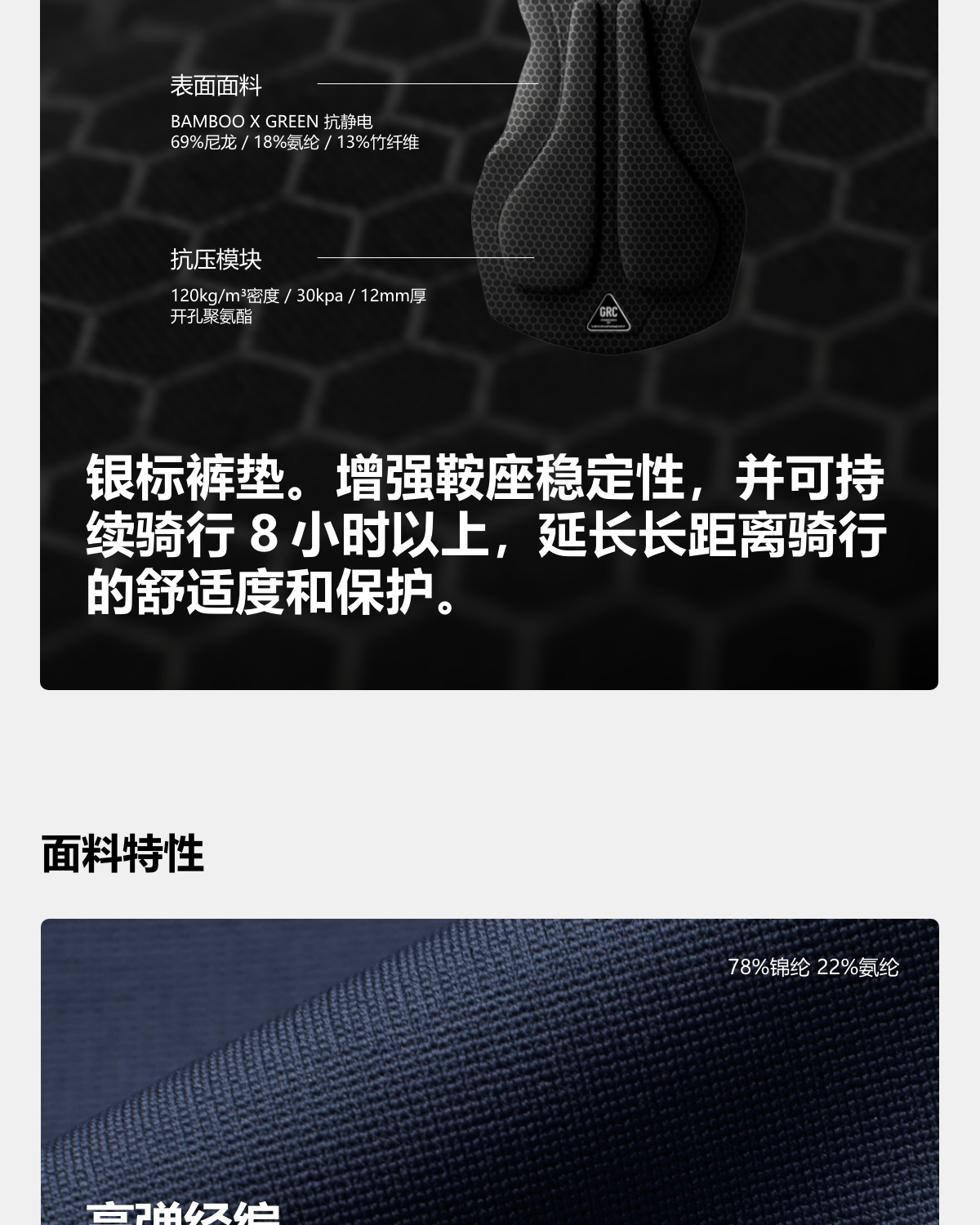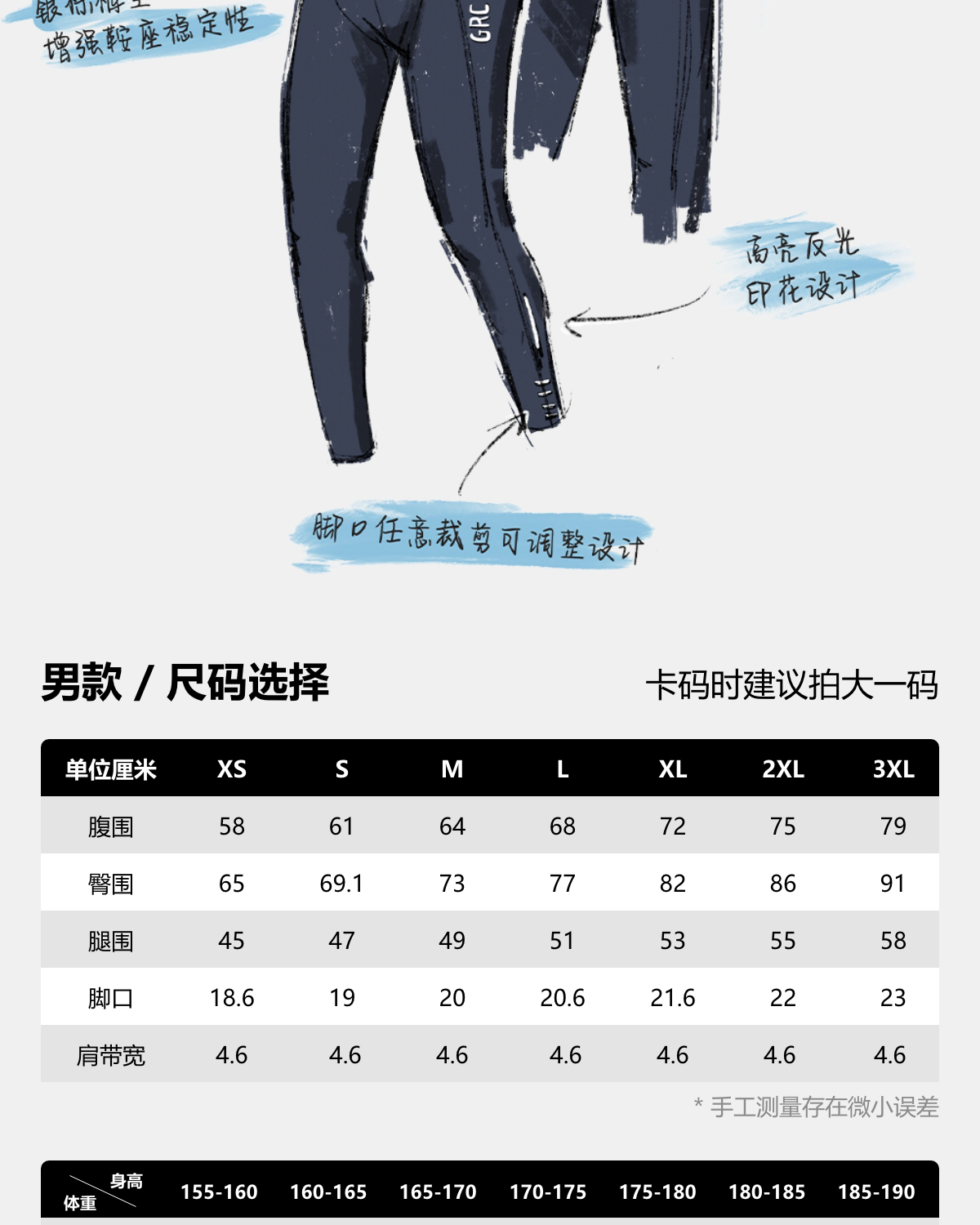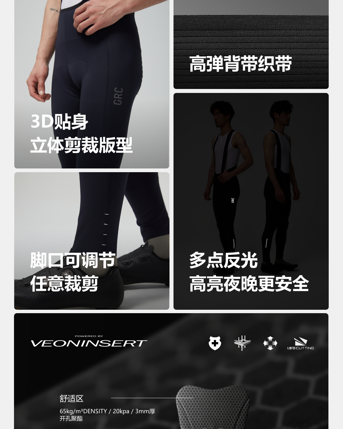 GRC桀骜无尽春夏新款骑行裤TECH系列男士透气反光骑行服背带长裤