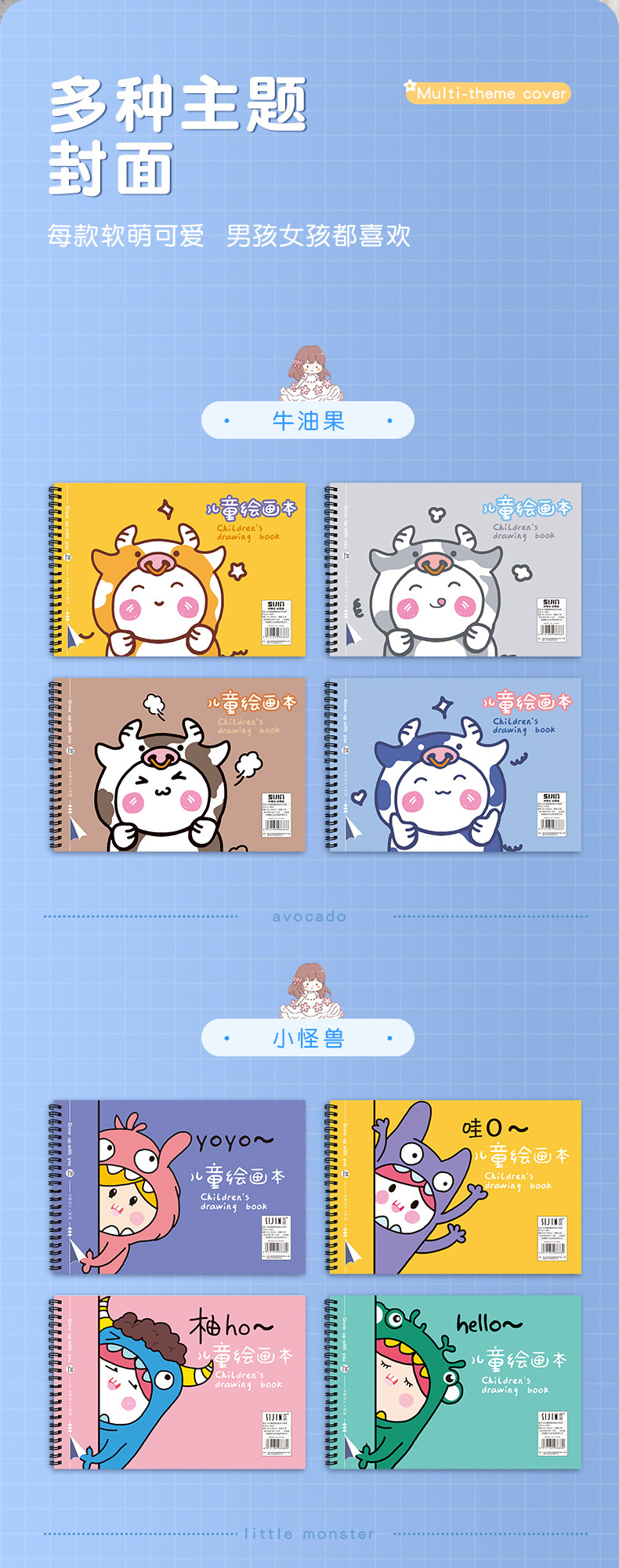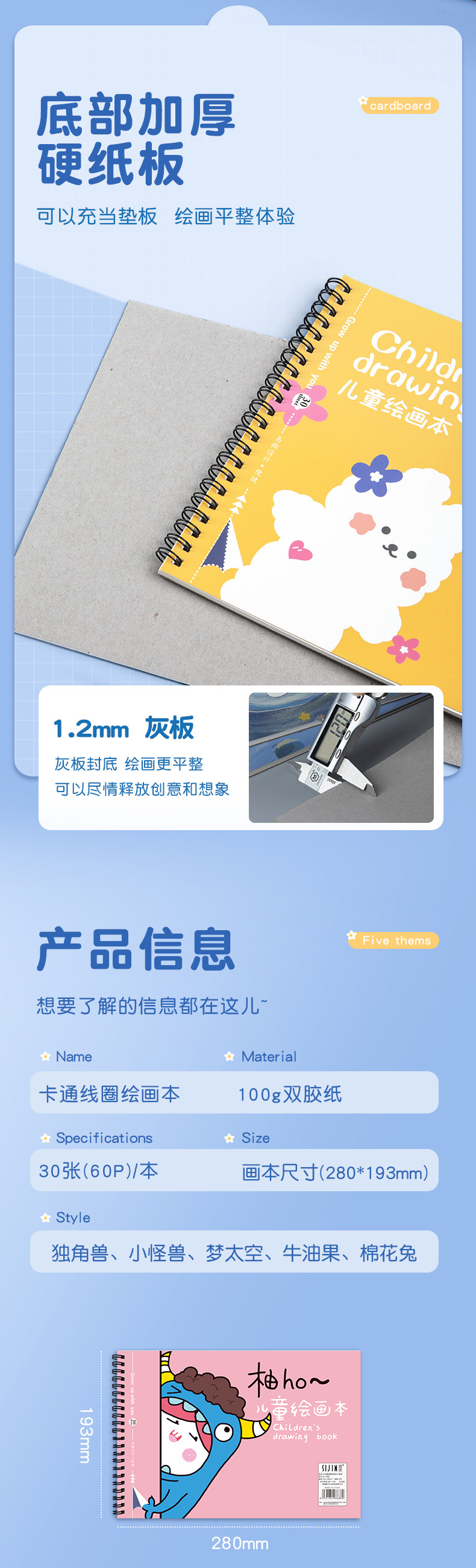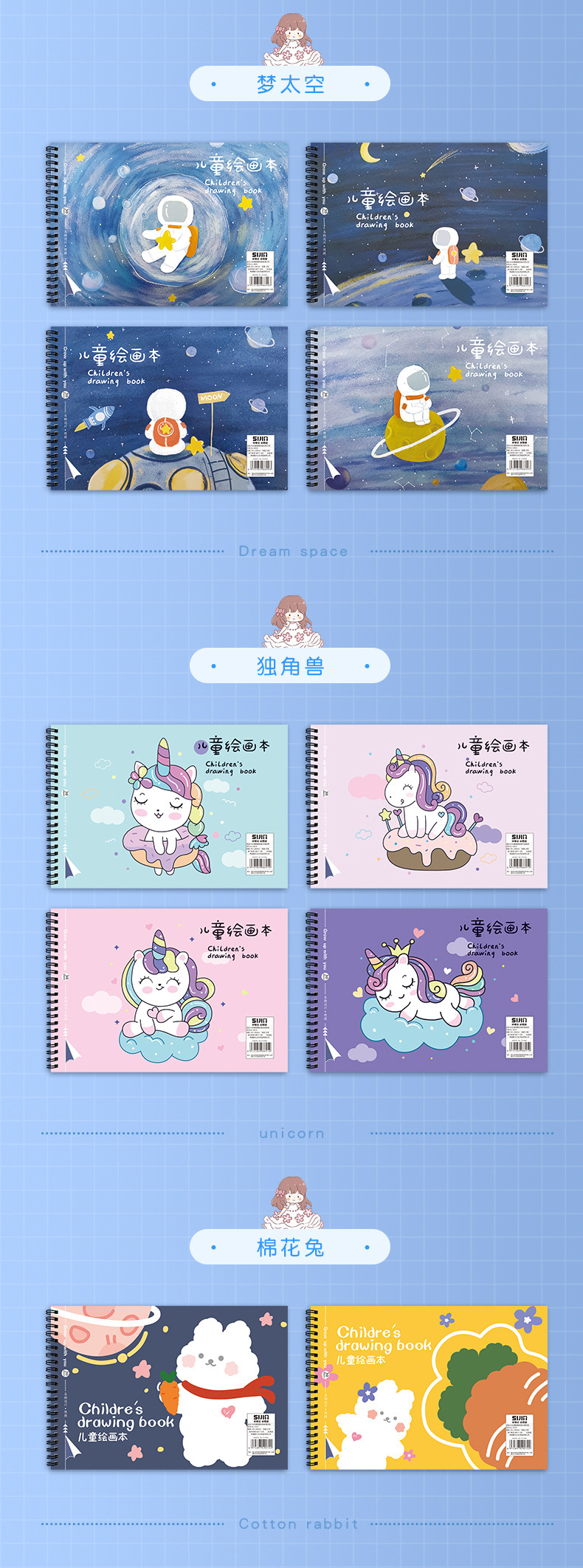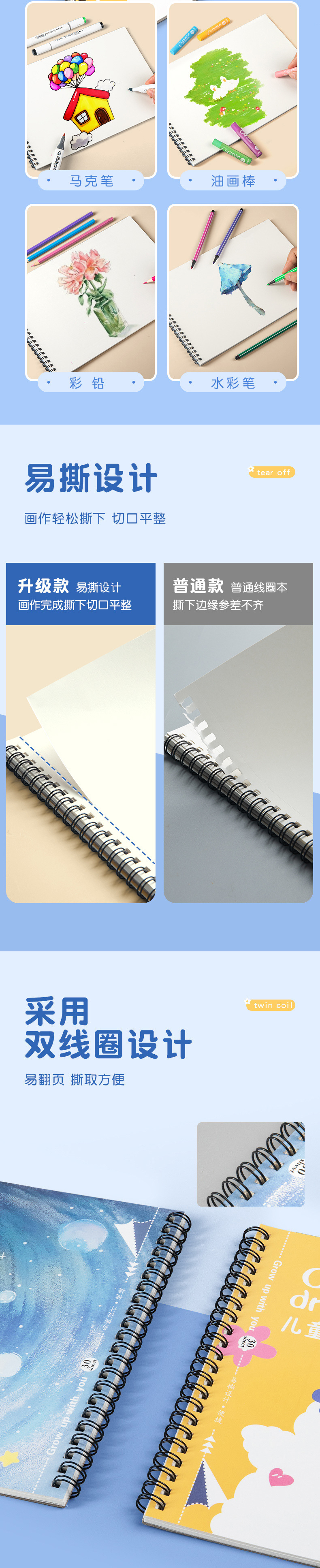 「一套4本装!数款可选」儿童绘画本a4加厚空白画画本学生用线圈涂鸦图画本素描本文具