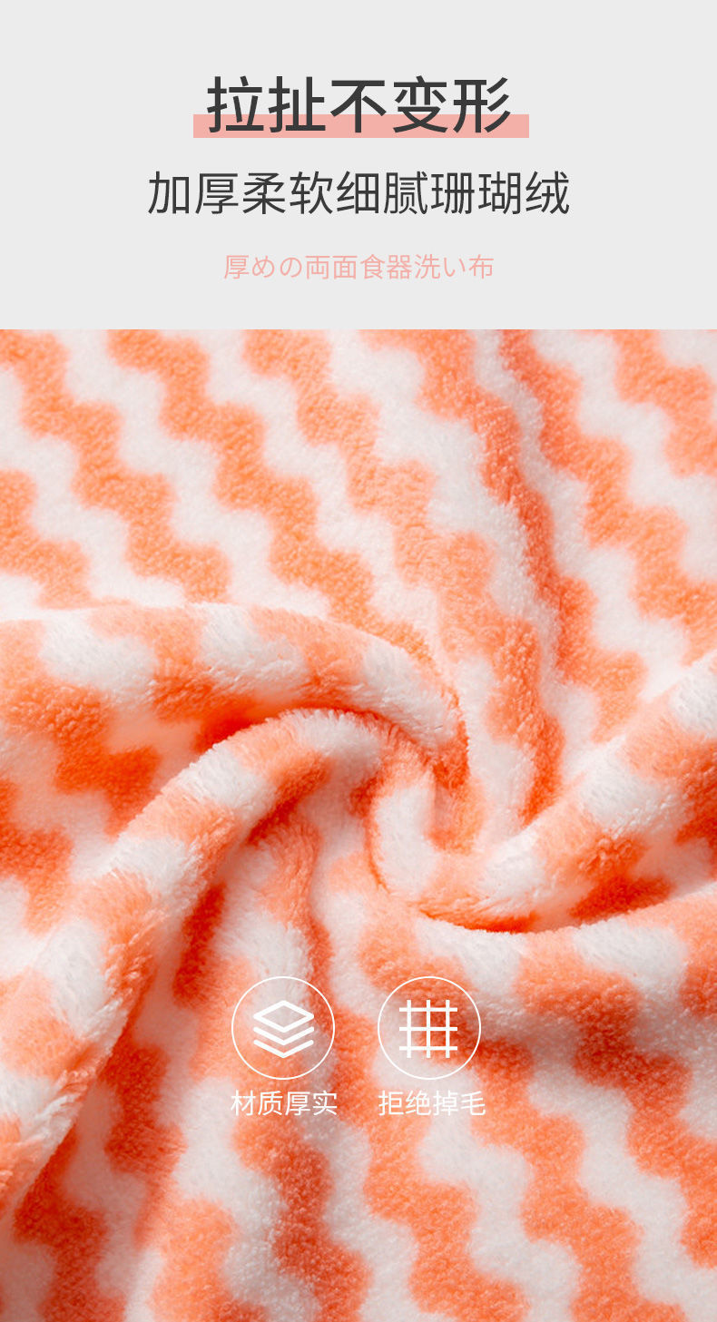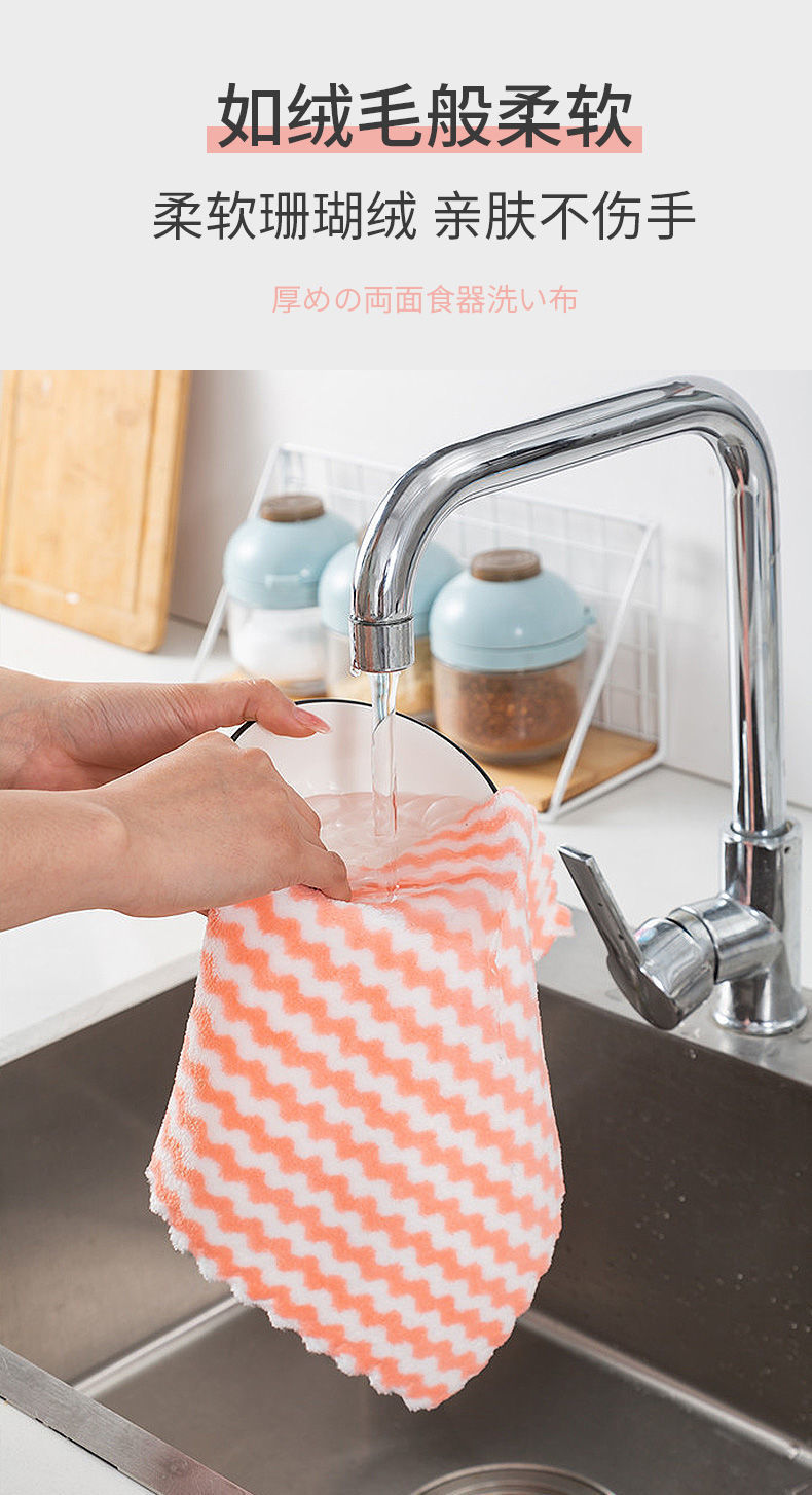 「10条装!干湿两用」加厚双面珊瑚绒水波纹懒人抹布 居家日用吸水清洁工具布