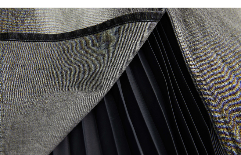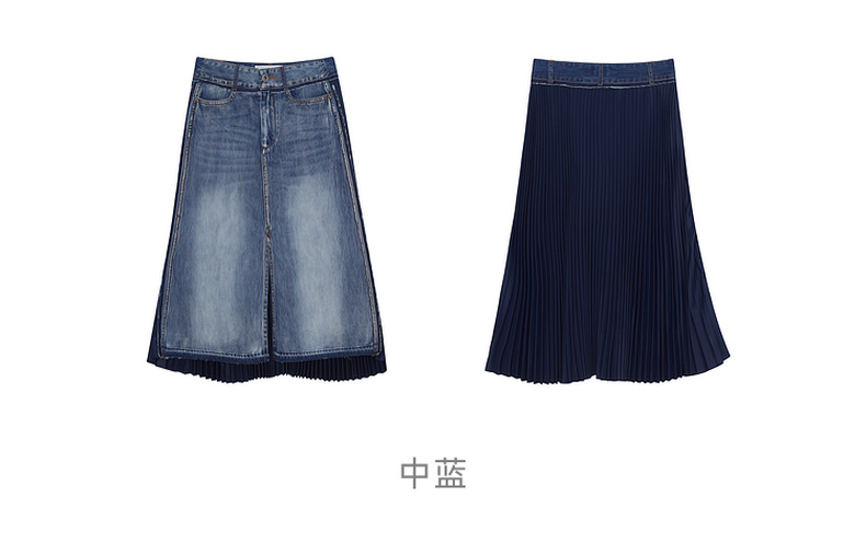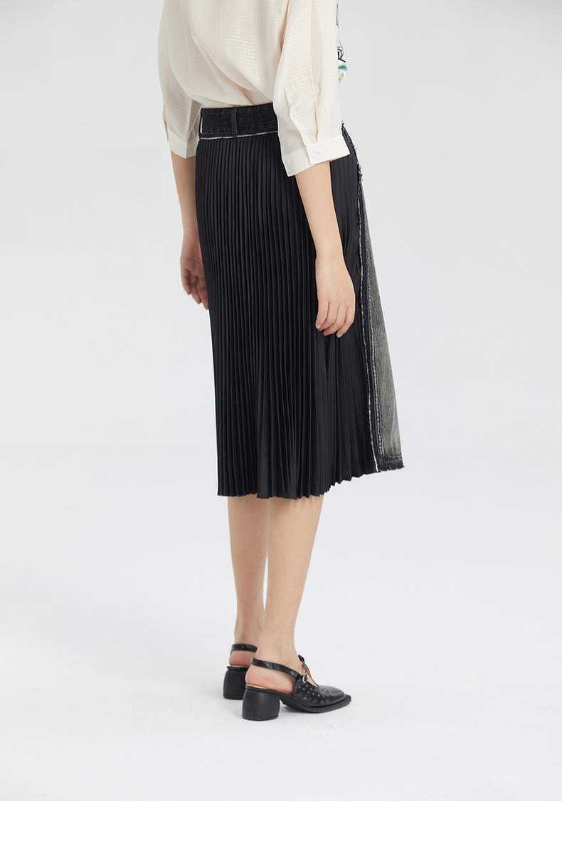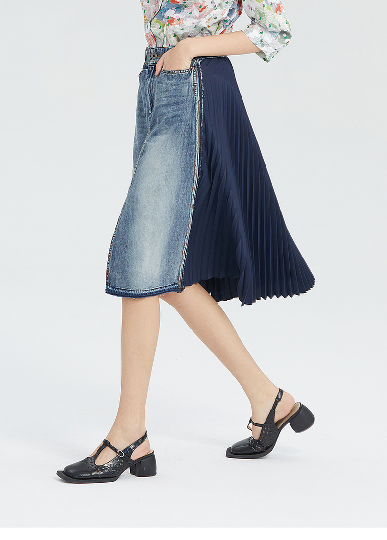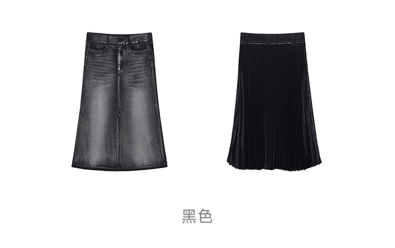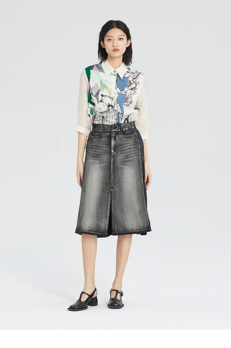 谜底半身裙2023夏季新款高腰百搭牛仔拼接雪纺中长裙女235MB6014