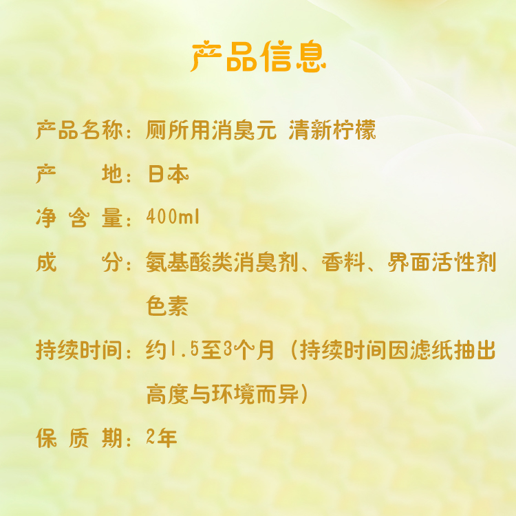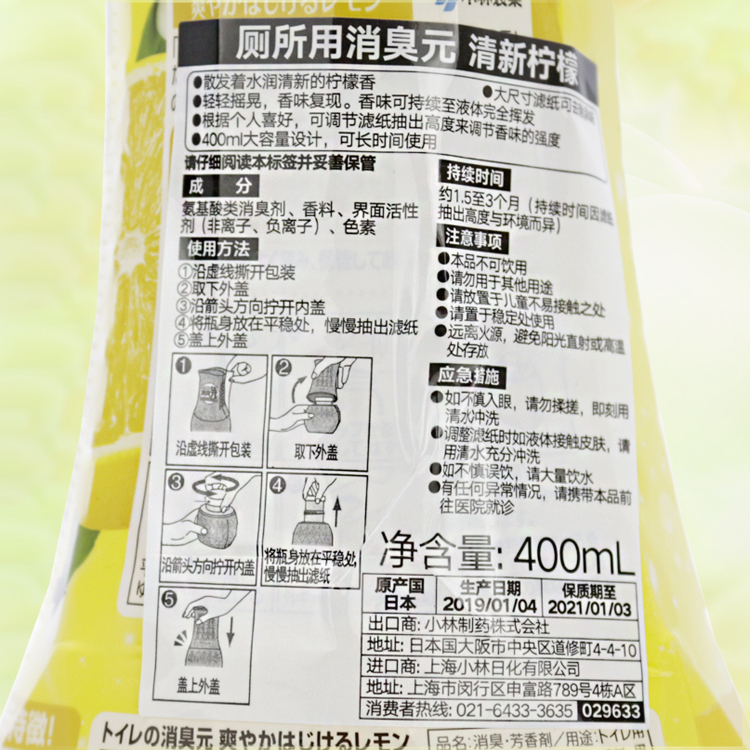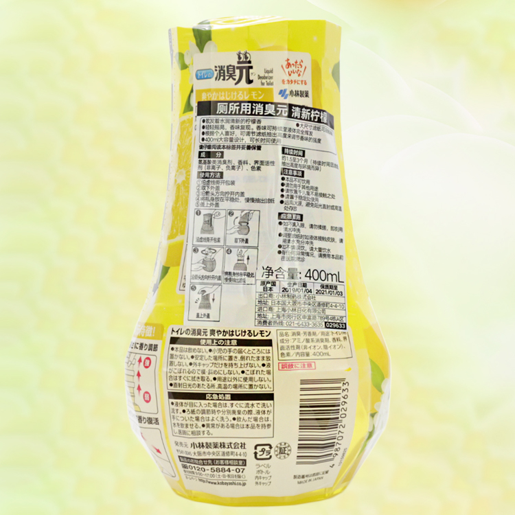 小林制药日本进口除臭剂空气清新剂芳香剂厕所用消臭元(清新柠檬)400ml