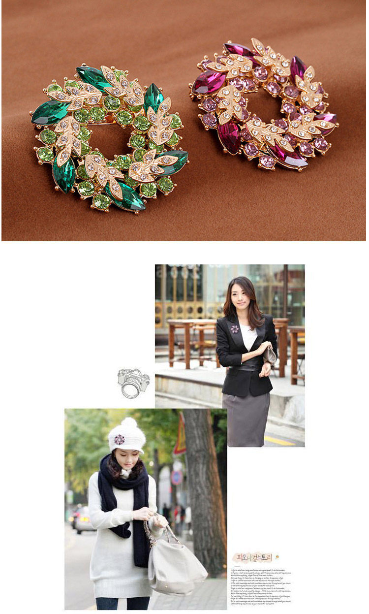 六鑫珠宝 韩国时尚人造水晶紫荆花环胸针