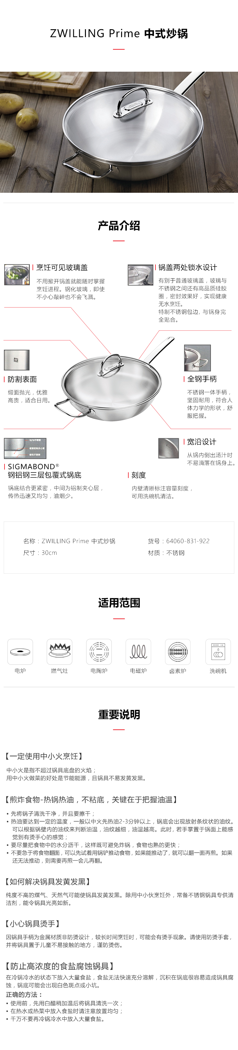 双立人ZW-C132 Zwilling prime 30cm中式炒锅
