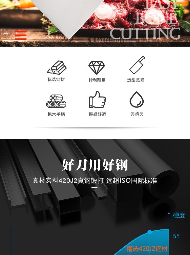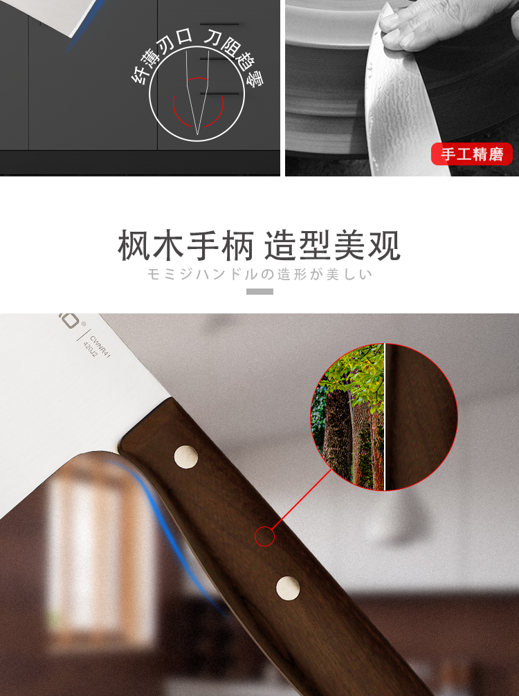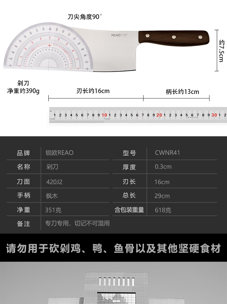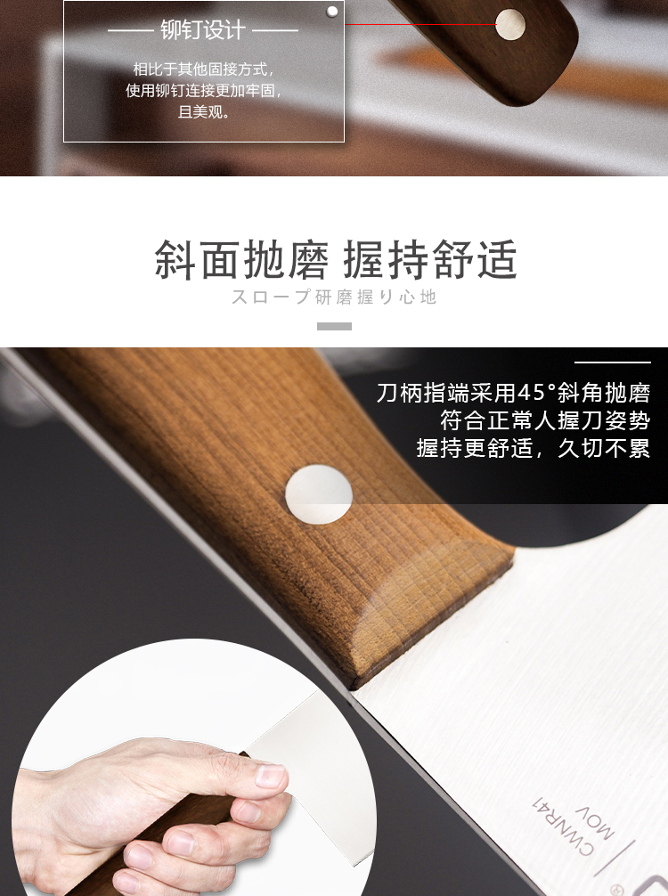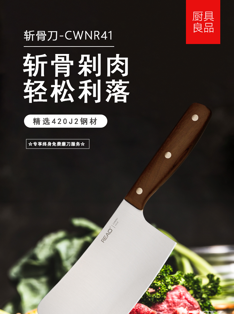 锐欧乐享系列枫木手柄不锈钢剁骨刀