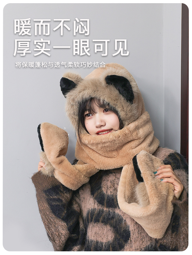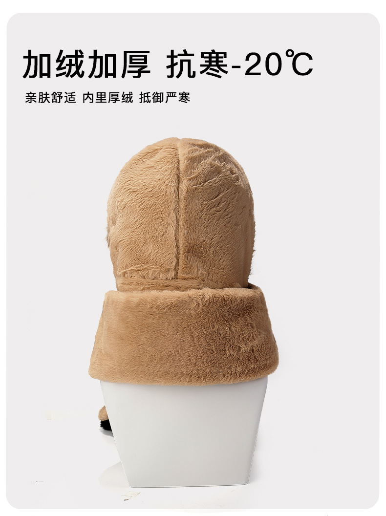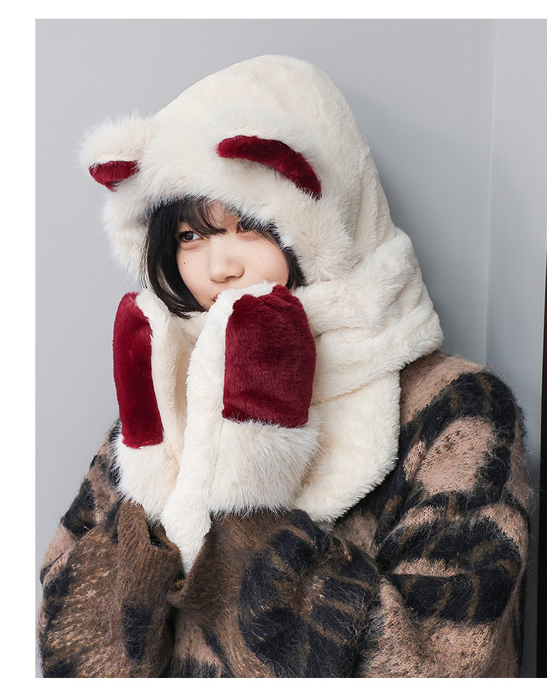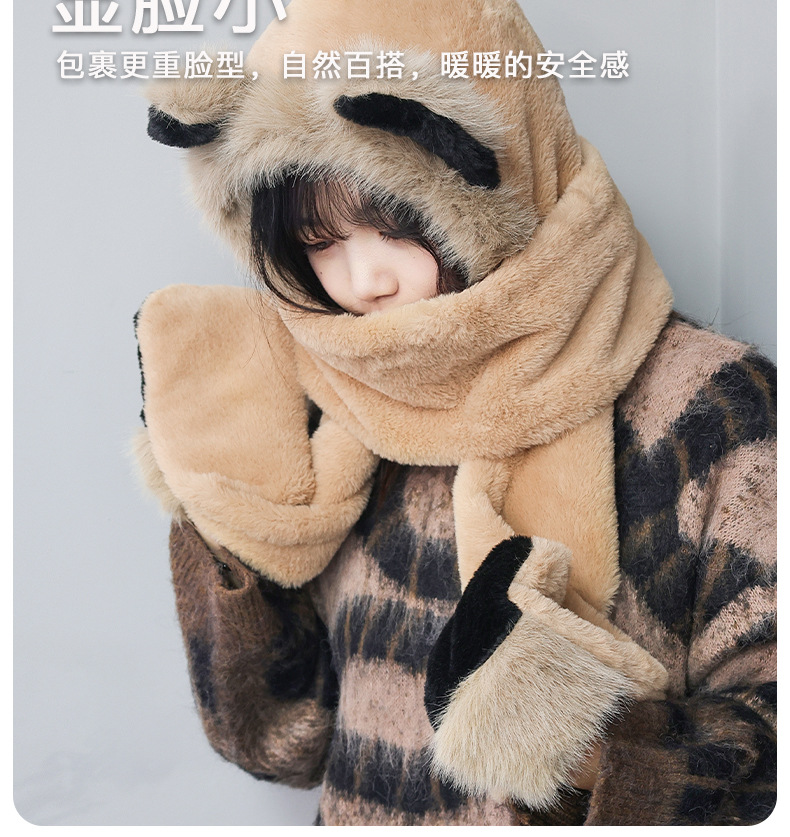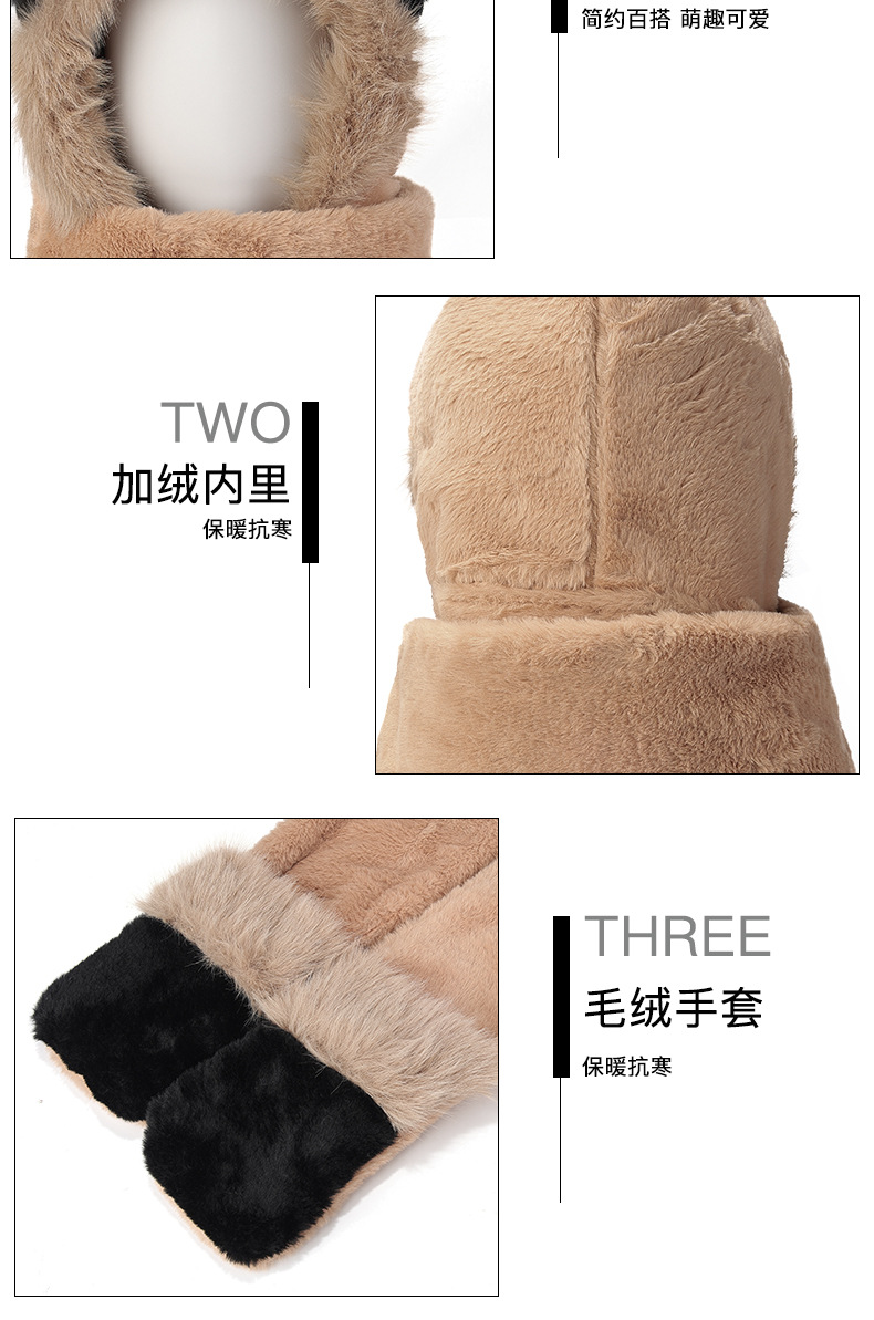 冬季仿貂毛围巾帽子手套一体雷锋帽小熊耳朵加厚防寒保暖帽新款新品