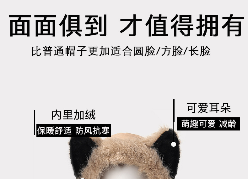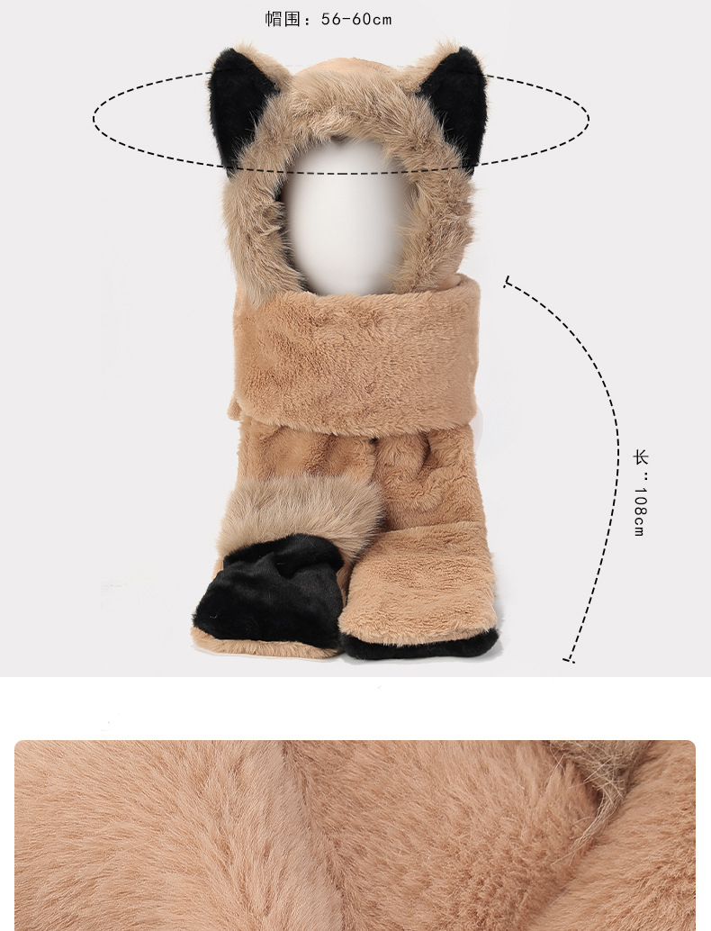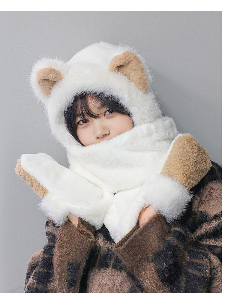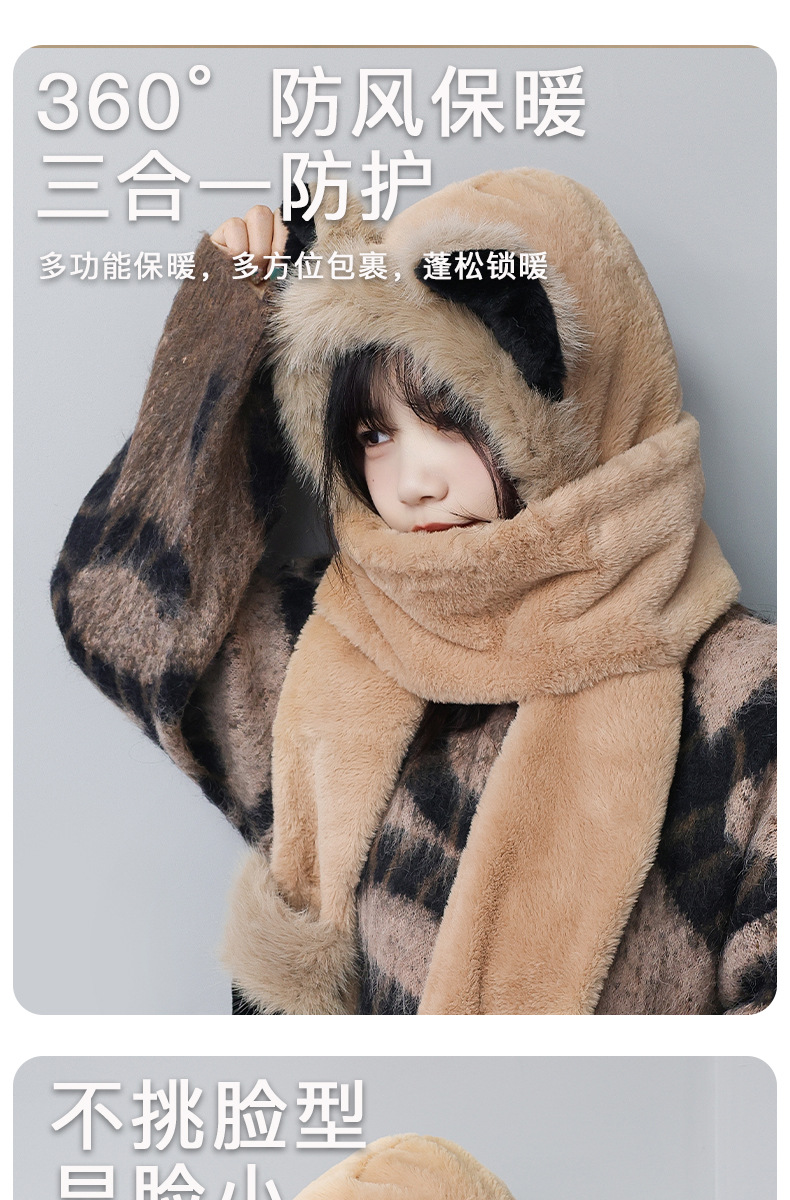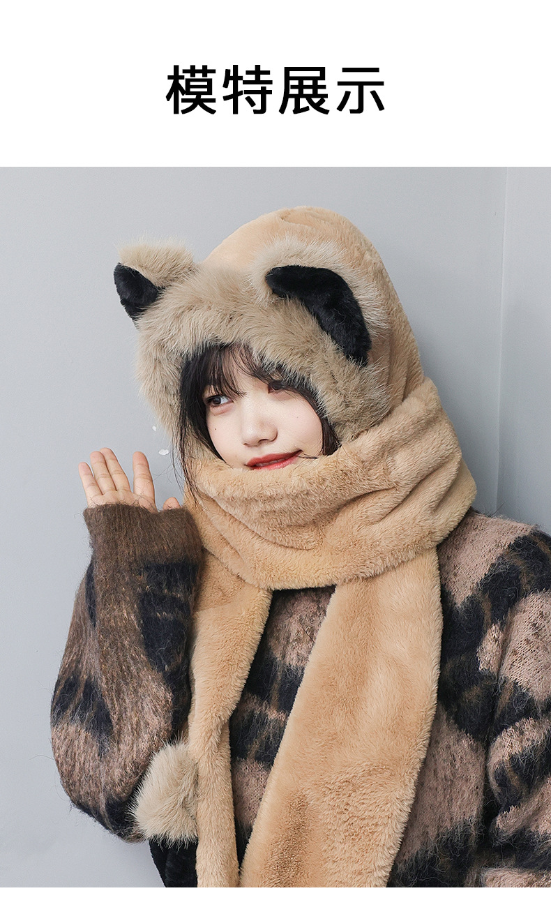 冬季仿貂毛围巾帽子手套一体雷锋帽小熊耳朵加厚防寒保暖帽新款新品