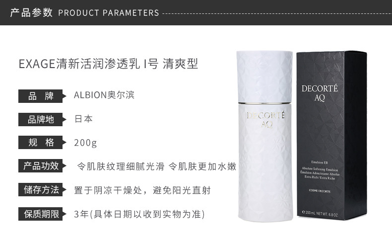 奥尔滨的入门级乳液,改善肤质的不二选择,针对不同肤质,有三种不同型号乳液可供选择,搭配奥尔滨健康水一起使用,
