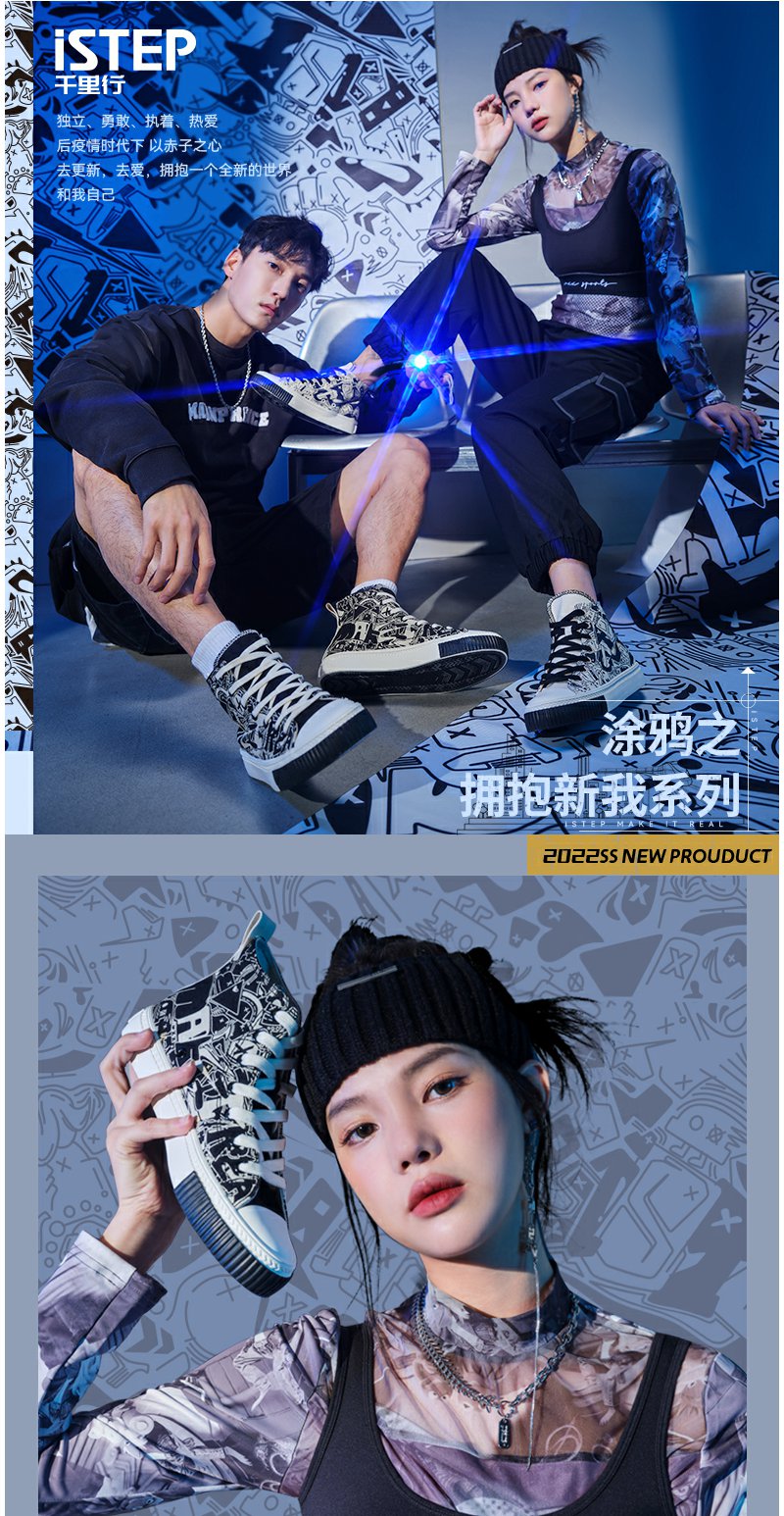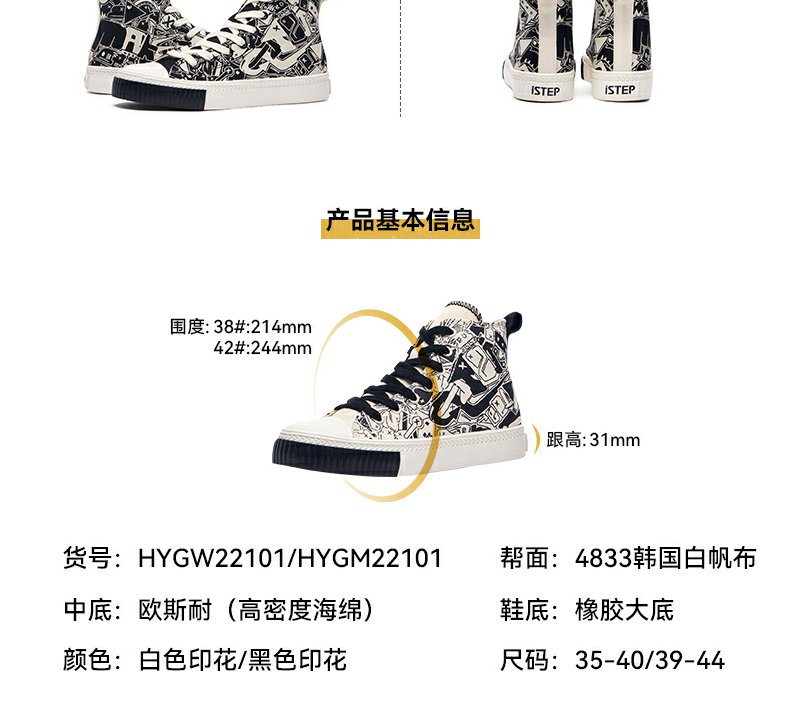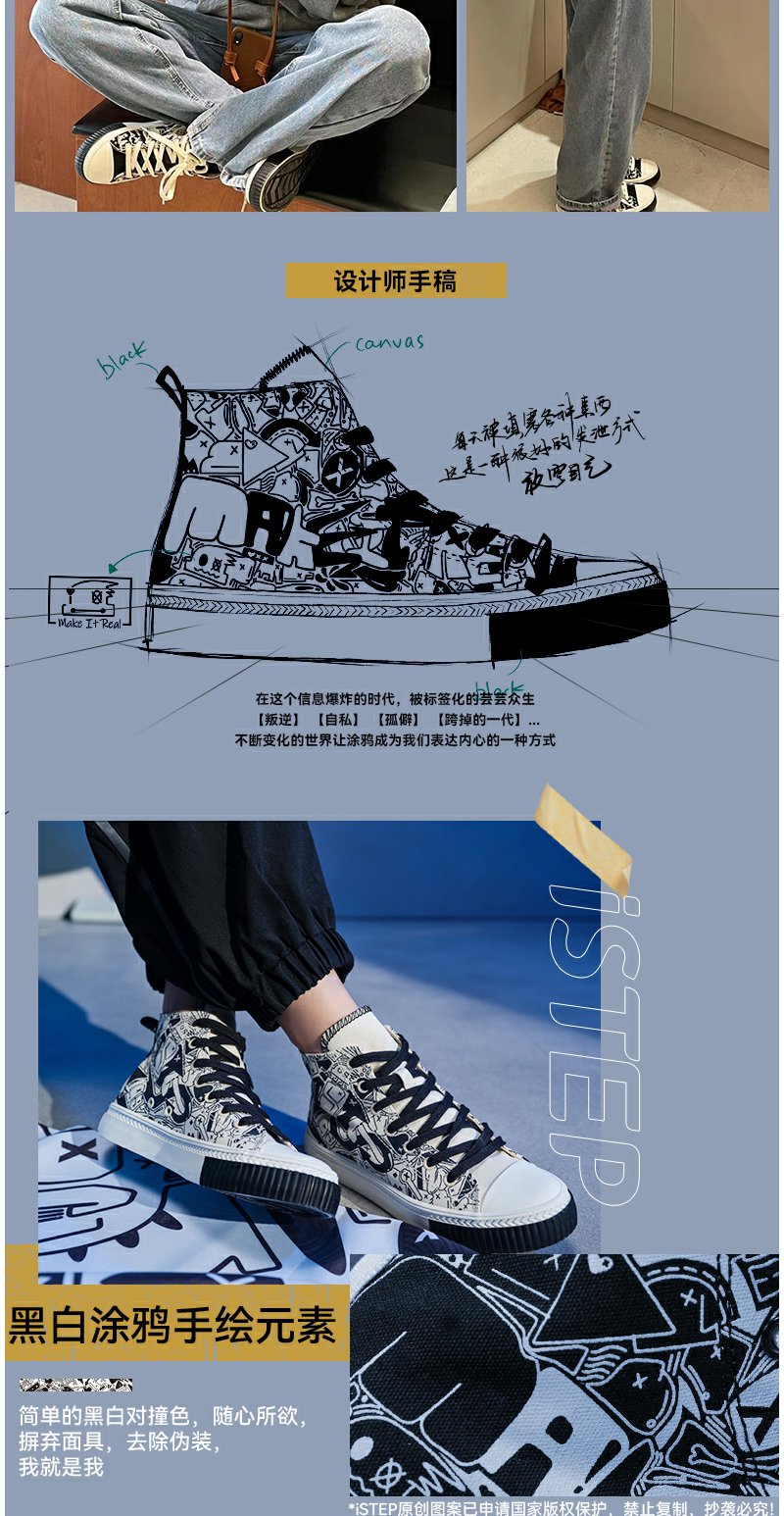 【2026新春专享】istep涂鸦个性高帮帆布鞋男女运动鞋(瑕疵品不退不换)
