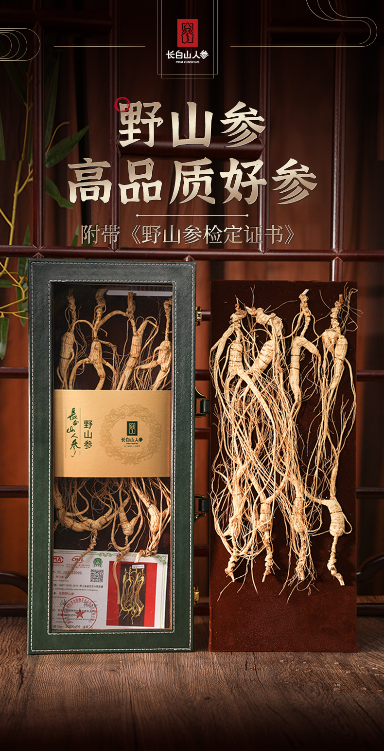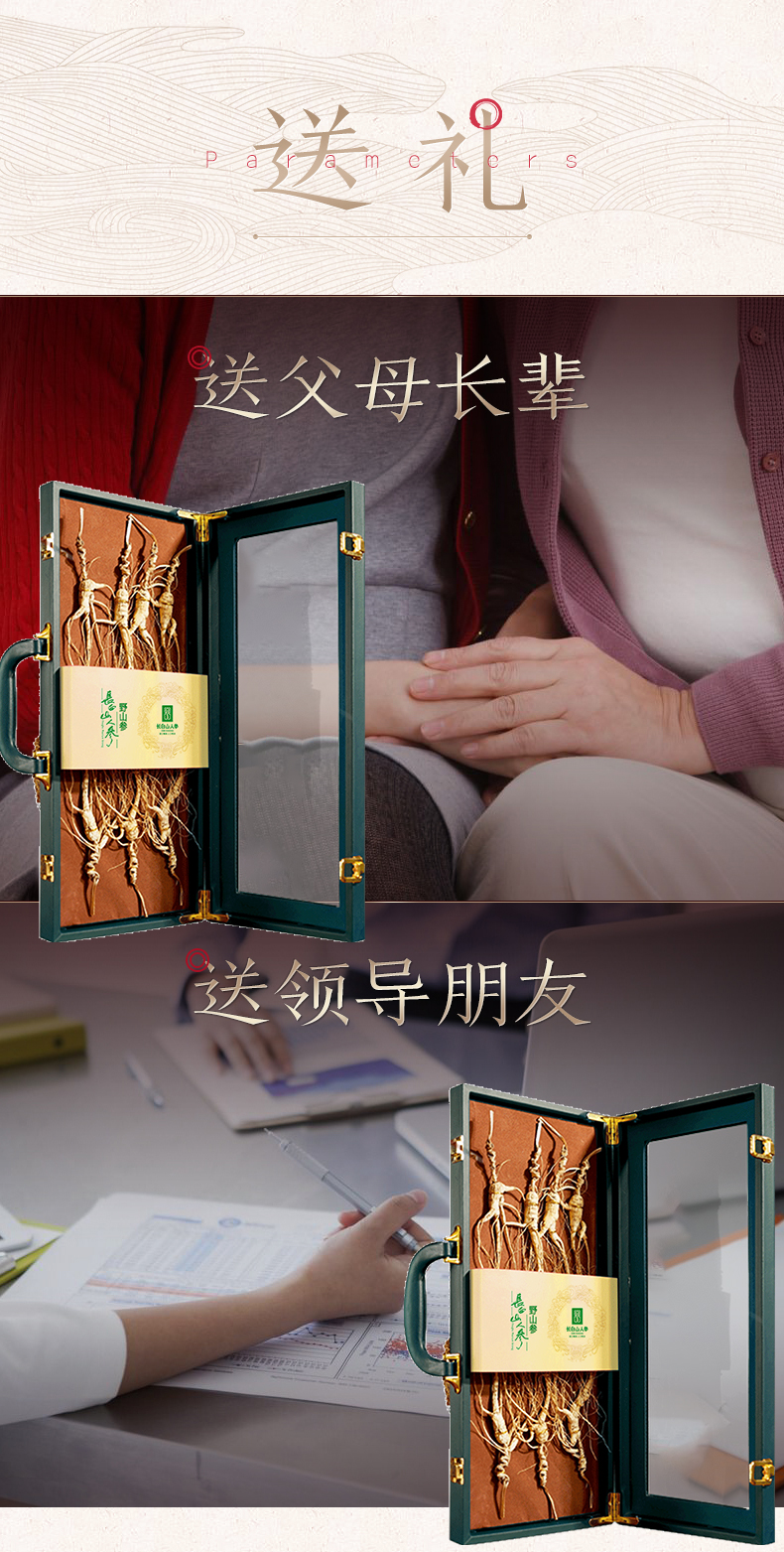热销J【20参龄野山参开窗礼盒】长白山人参野山参权威证书送长辈礼品50g