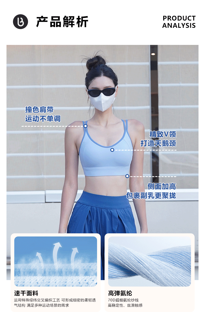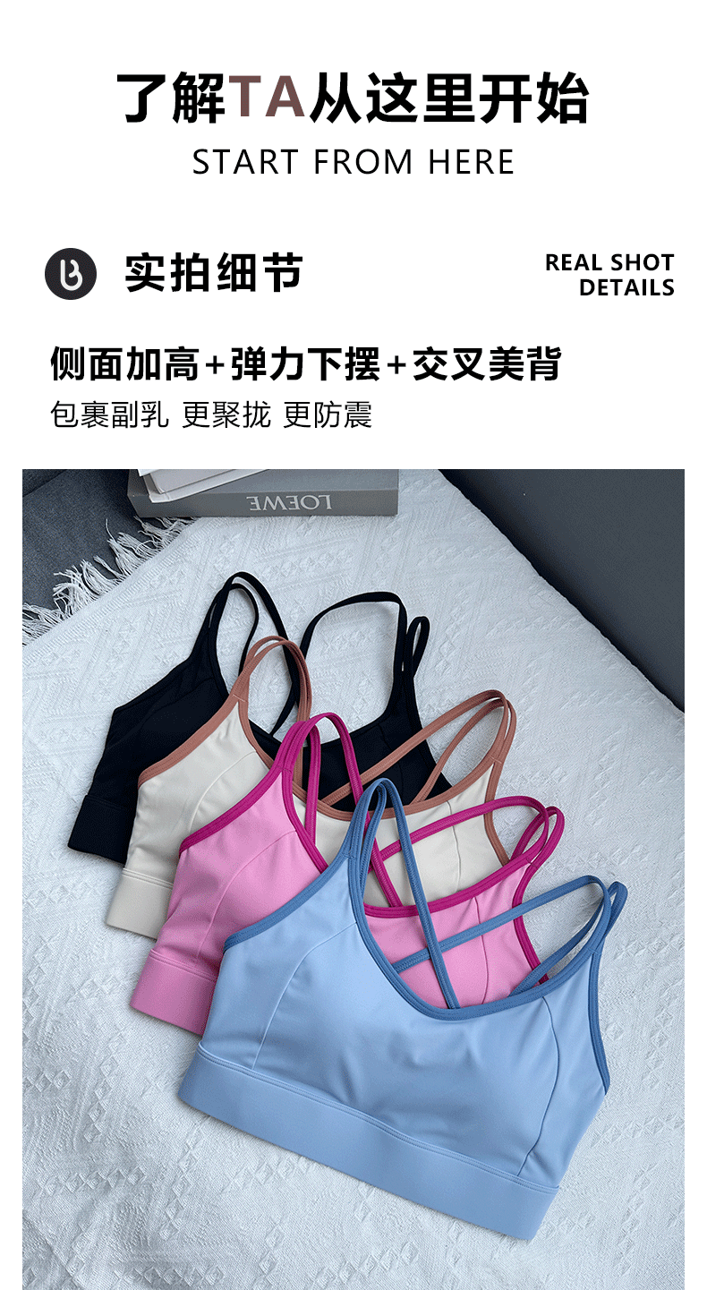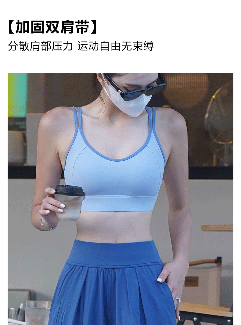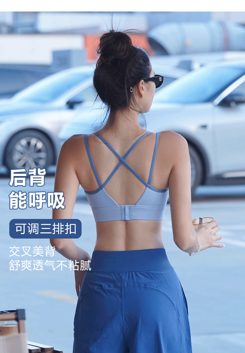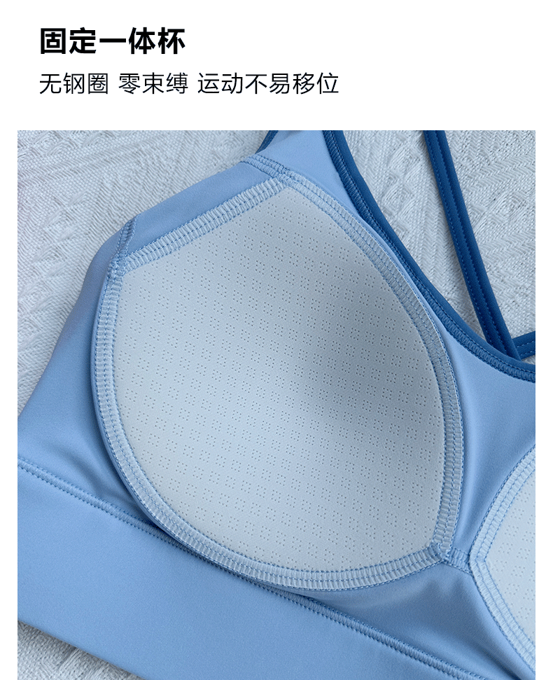 Beemen一体式固定防震文胸 中高强度运动内衣美背瑜伽背心 跑步健身瑜伽服 透气速干