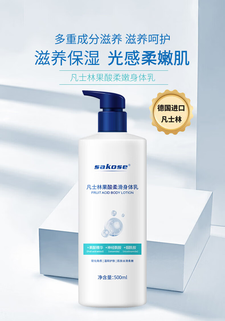 sakose凡士林果酸柔滑身体乳500ml防干燥干裂滋润保湿全身留香润肤露 100025480377