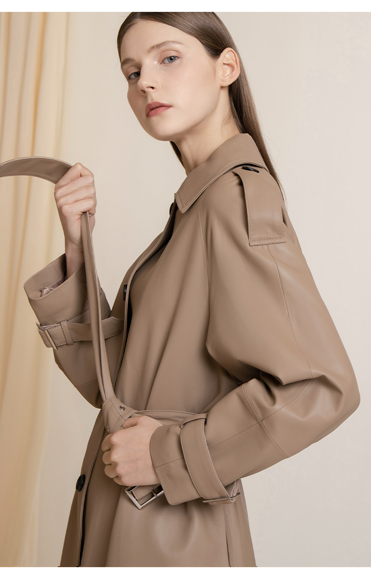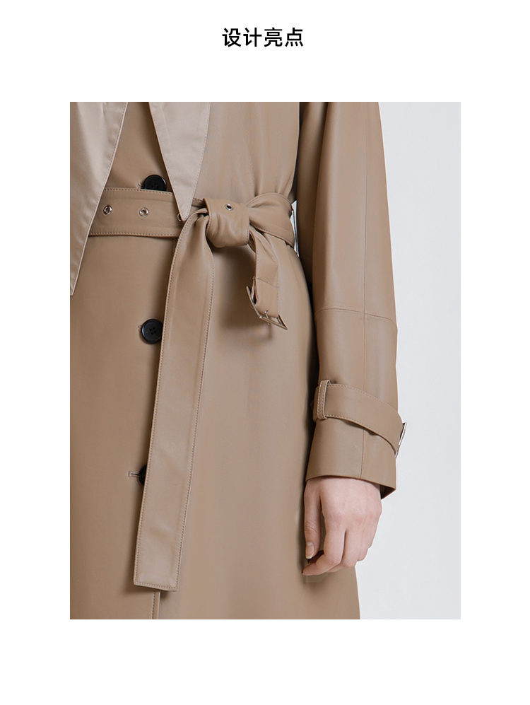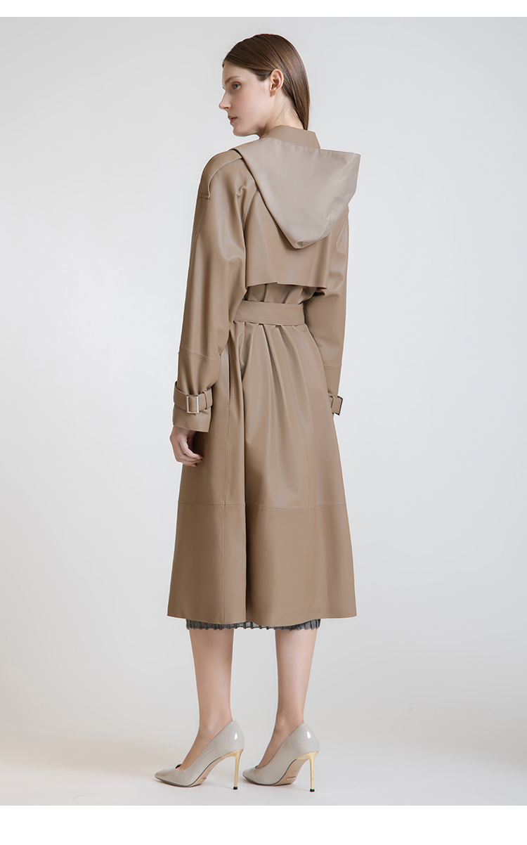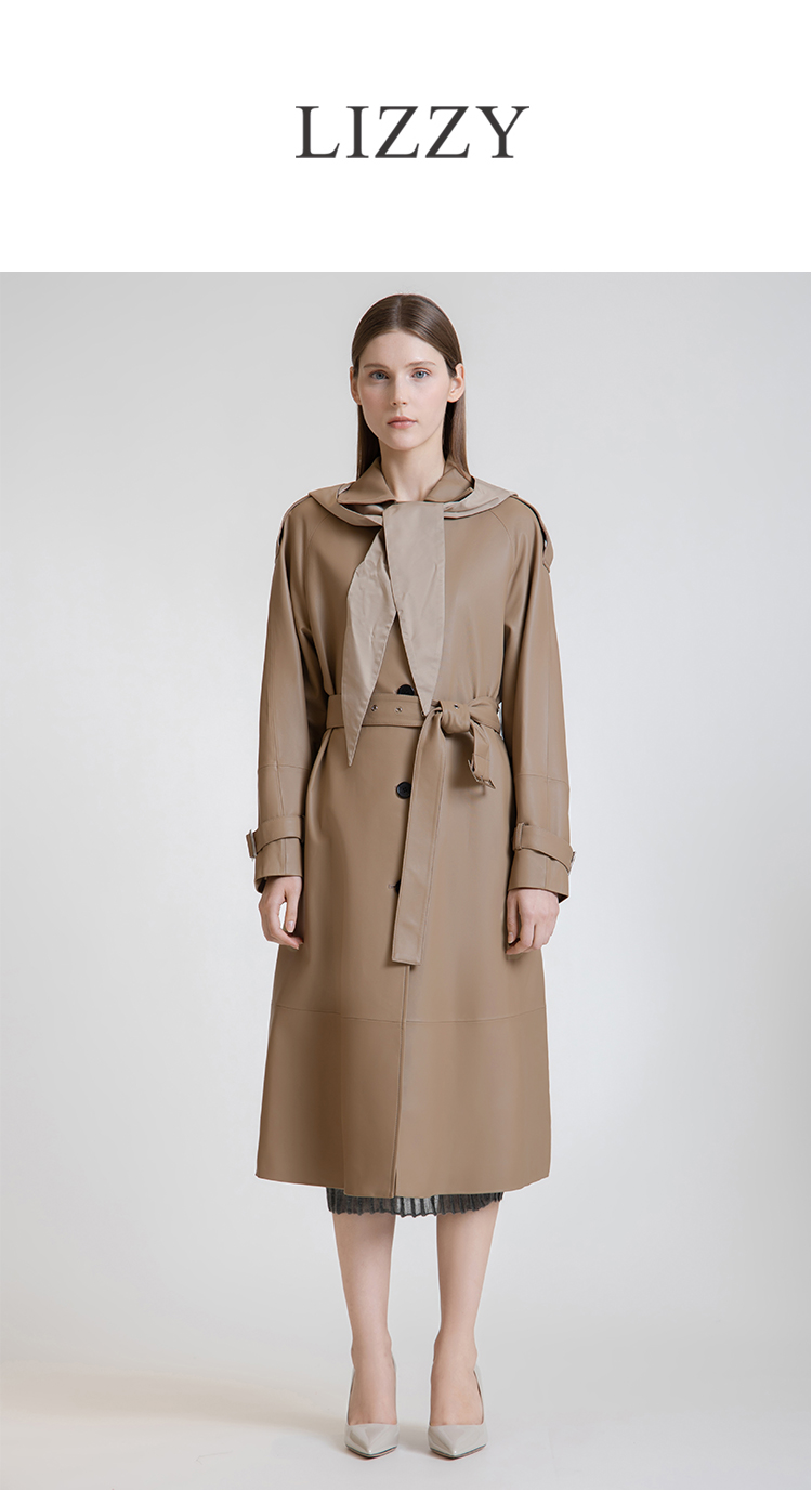 LIZZY 秋季绵羊皮翻领单排扣风衣外套(可脱卸帽)7456