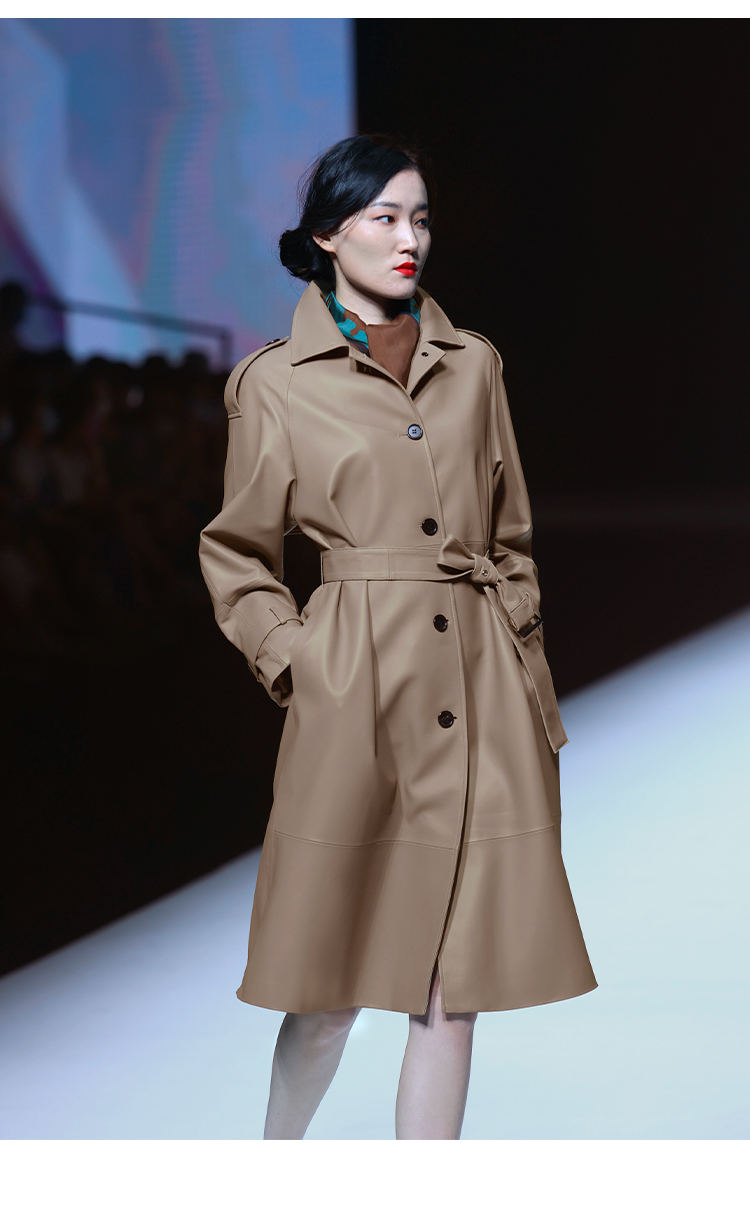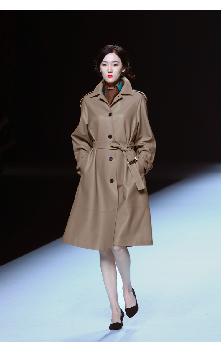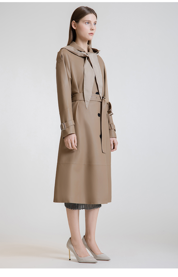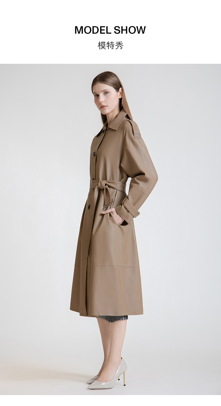 LIZZY 秋季绵羊皮翻领单排扣风衣外套(可脱卸帽)7456