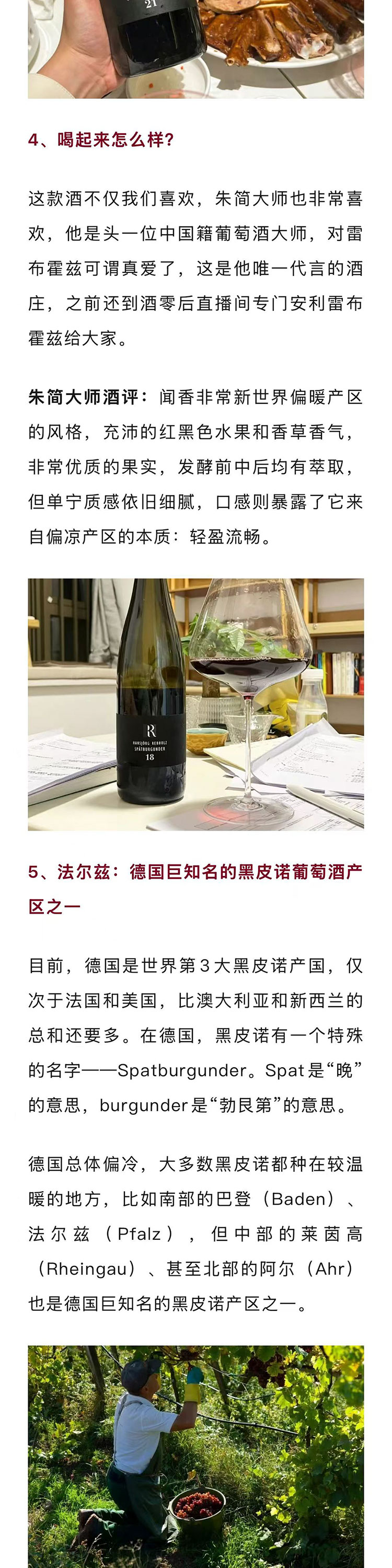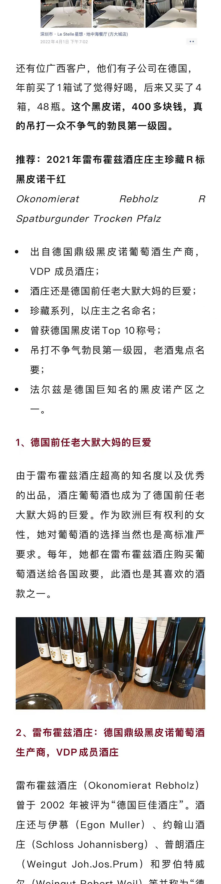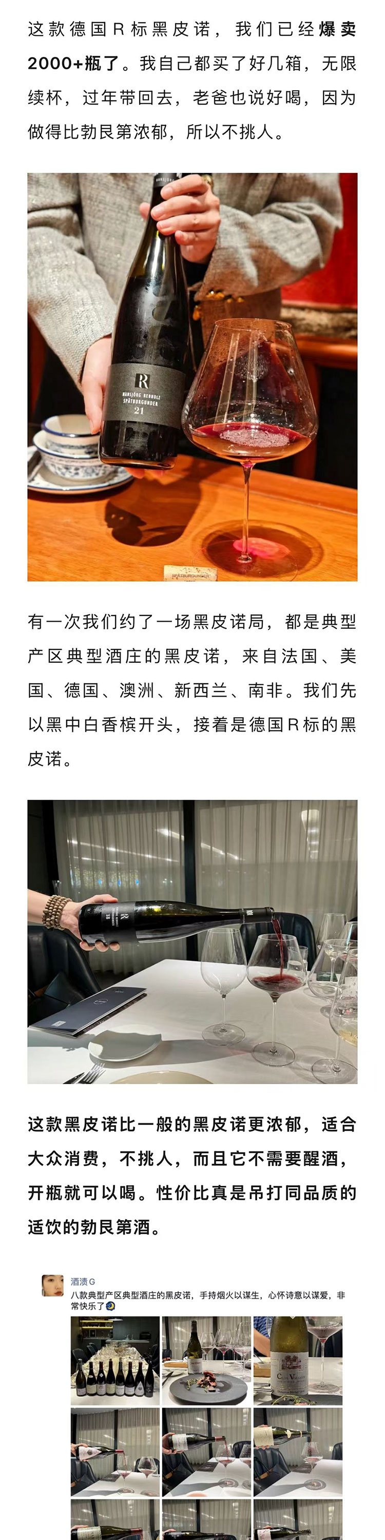 【卖2000+瓶】德国2021年雷布霍兹酒庄庄主珍藏R标黑皮诺干红
