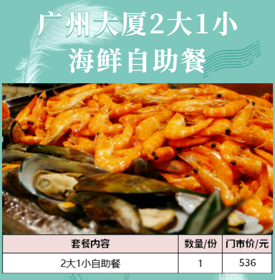 【越秀|北京路】广州大厦2大1小午/晚餐海鲜自助餐
