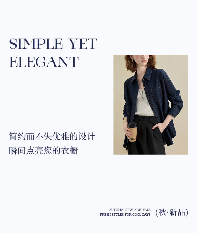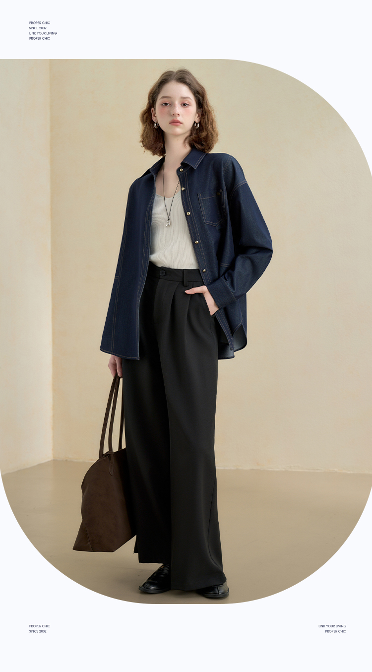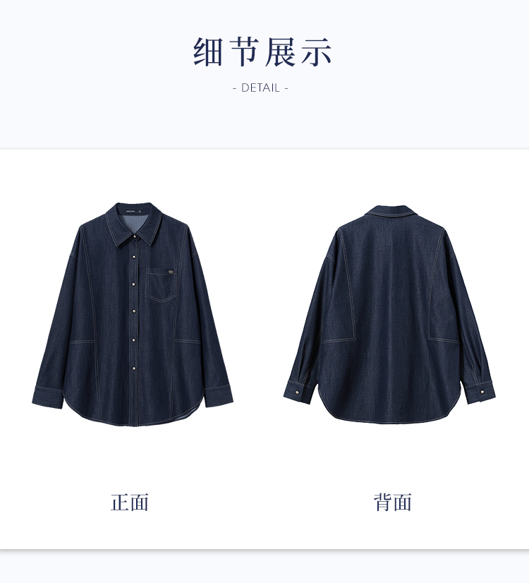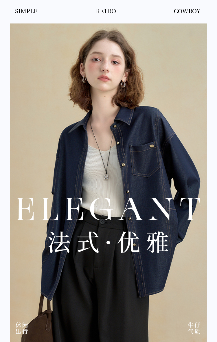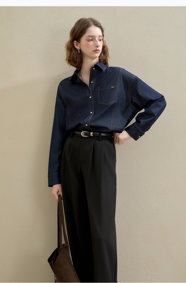 西遇复古港风蓝色仿牛仔衬衫女2025秋季宽松百搭慵懒休闲通勤外套V2951197