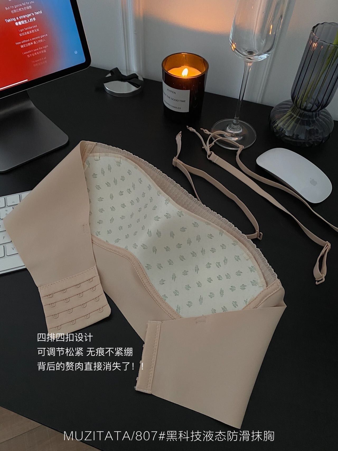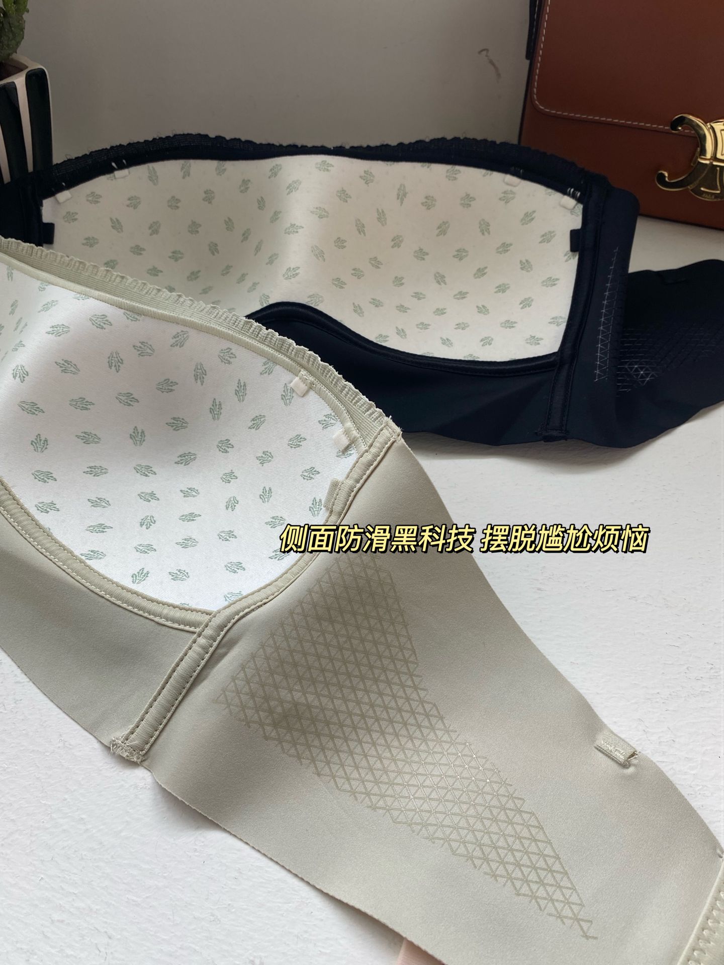 抓力太震撼了,侧比的这块液态防滑胶条,真心是再滑也可以牢牢吸得住。给肩膀放个假!无肩带也巨稳!!!穿上真的是舒服到没边啊姐妹!品质太棒了!细节做工和贴心的小心机设计,不得不服 我敢保证你穿着蹦迪都可以牢牢吸住。我惊了这件!靠谱抹胸 真的不掉,各种大幅度的动作我都做了。这件内衣就是可以撑得住一整天都不跑位,亲测没毛病 都可以放心买买买。扒拉在胸部上没有缺陷,360度彻底服帖 相信我 穿什么衣服它都能给你撑得住场面