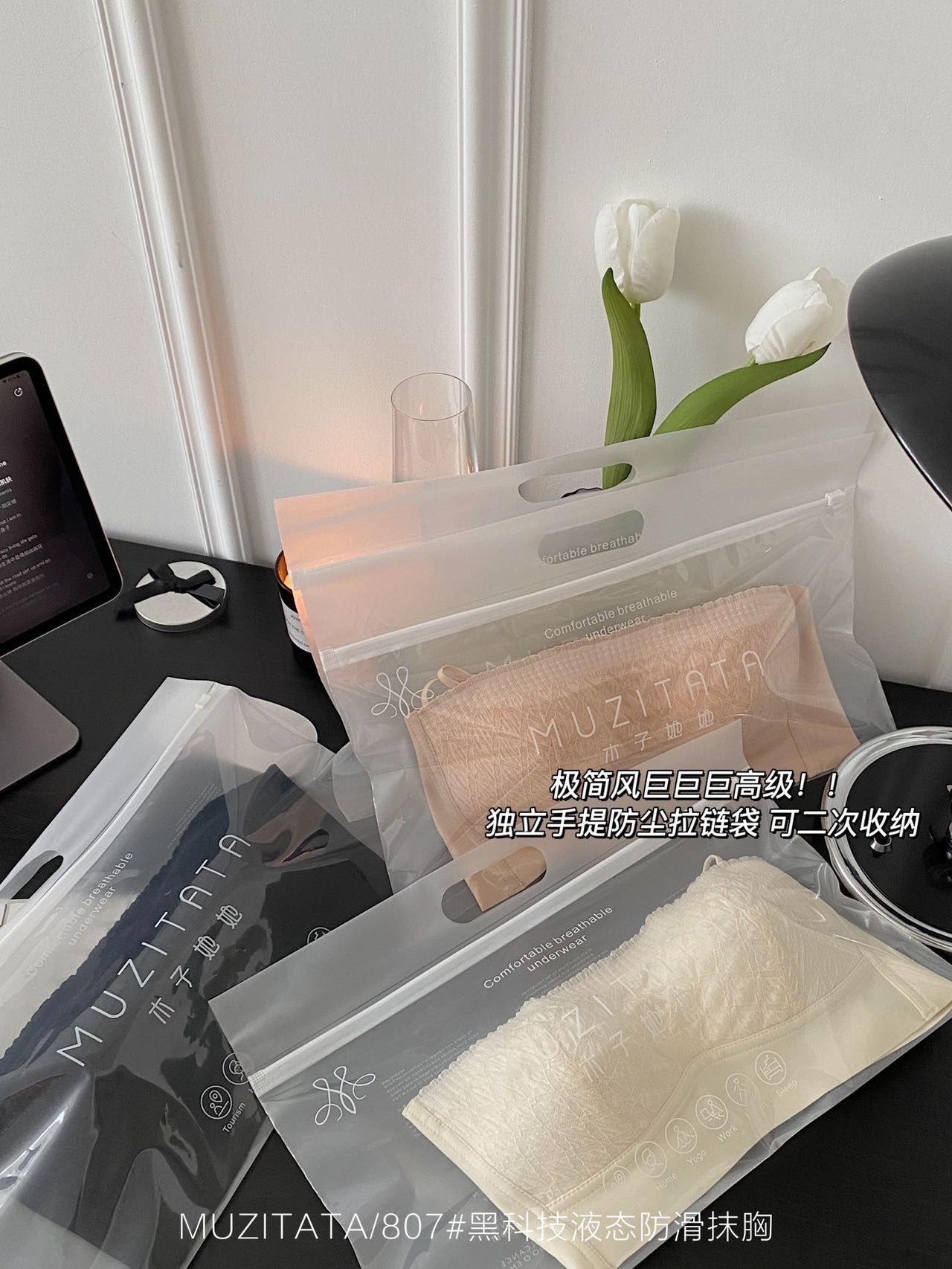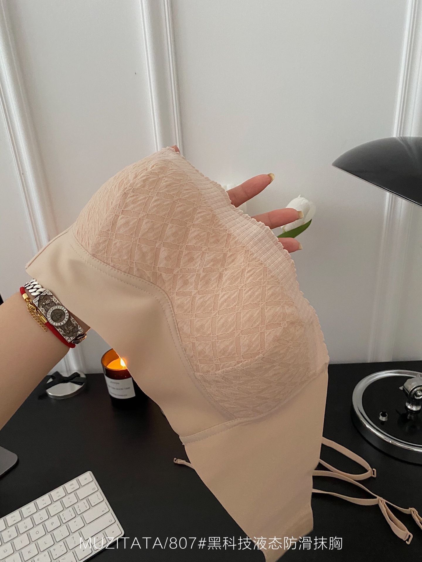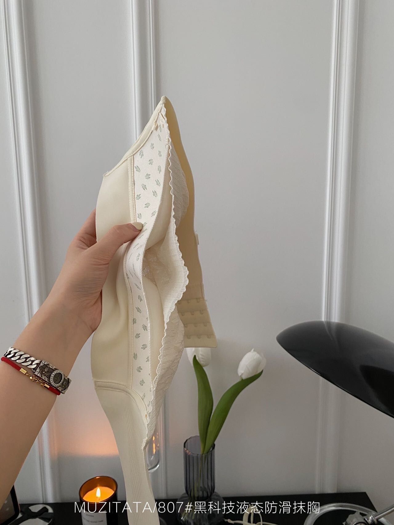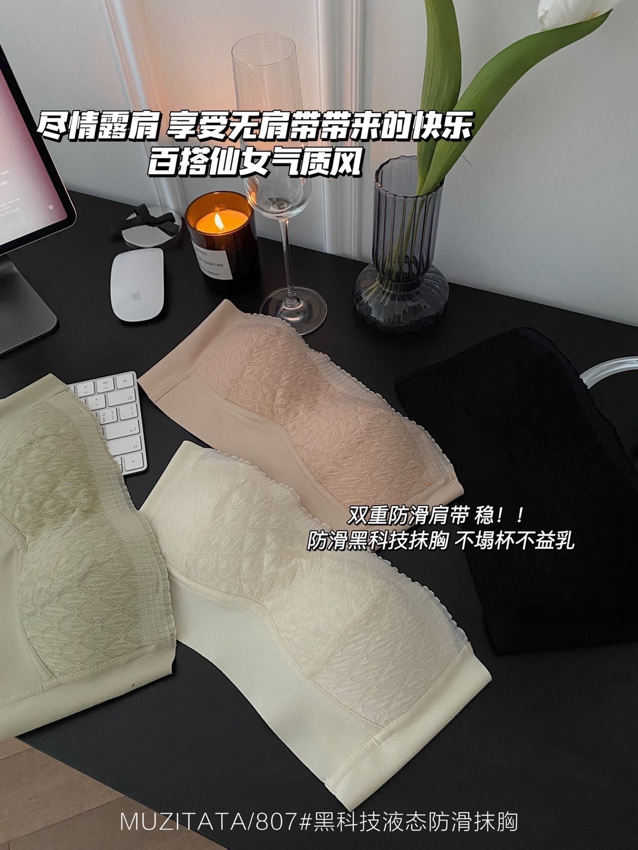 这件真心是厉害了。即是无肩带内衣!又是一件超强包附的抹胸。重点是仙仙的高颜值下 竟然有这么顽强的吸附力,有颜值又有实力 果断安排入!这件无肩带内衣 你想它掉都难!!!认真品品 绝对是十足用心的一件内衣了,双重防滑一步到位 背后隐形肩带调节,还有侧翼两边都加强了黑科技液态防滑条,这工艺妥妥的大牌** 绝对是狂甩不掉的一件。有颜值又有实力 还很抗甩,我就不信你衣柜里不缺它 仙女感UP!瞬间都觉得自己里里外外都香香的 太精致了好吗!买回去就是可以这样子蹦的,掉了算我输!!