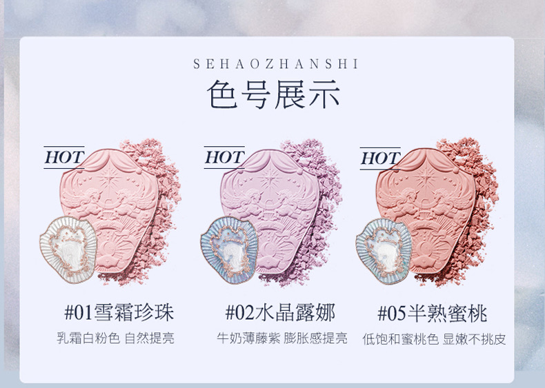 花知晓独角兽系列腮红雪霜膨胀色腮紫女胭脂高光修容
