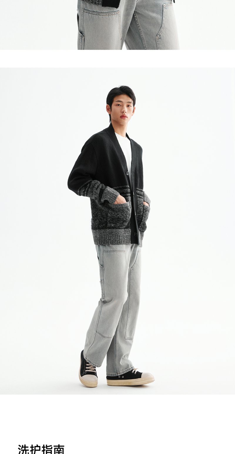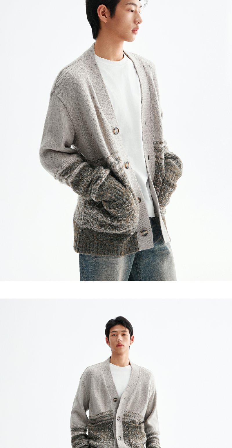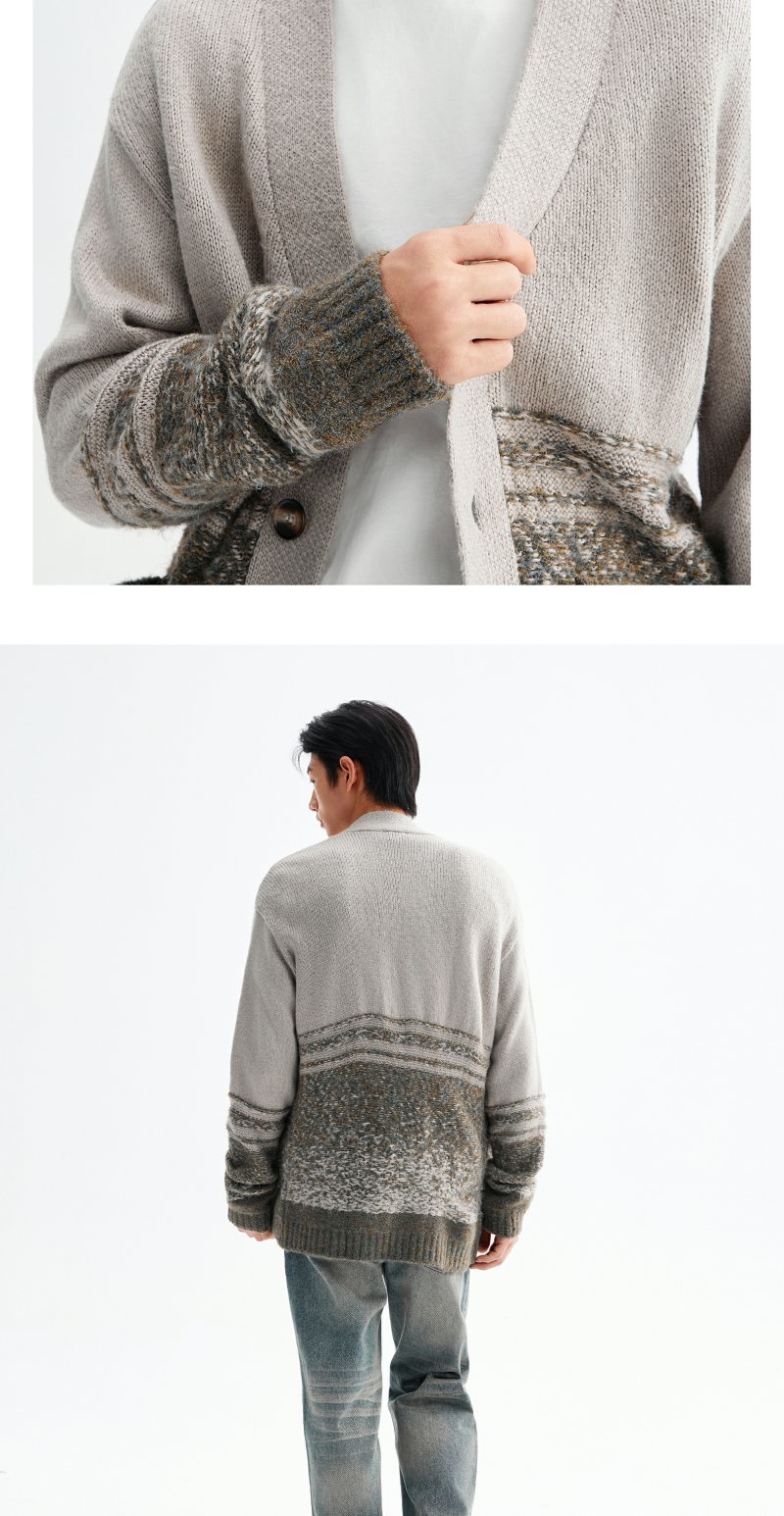 CHINISM折扣季 渐变色开衫毛衣男冬季新款美式复古针织衫上衣外套