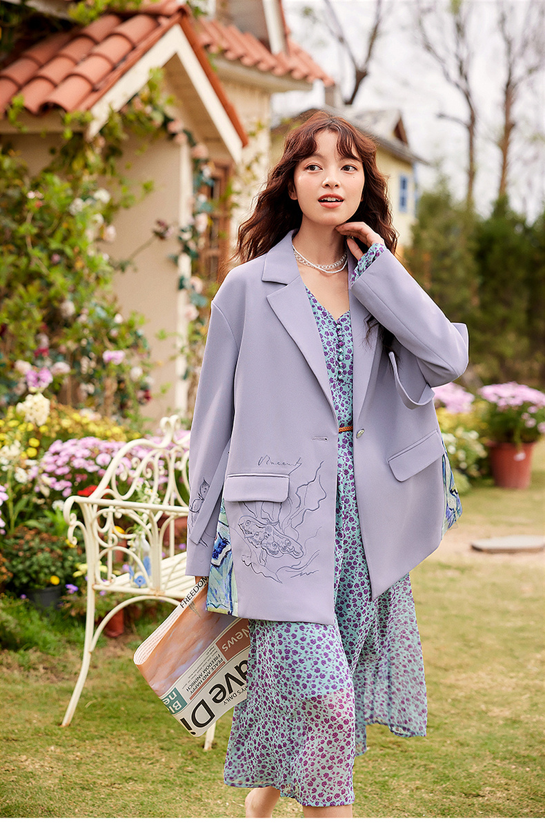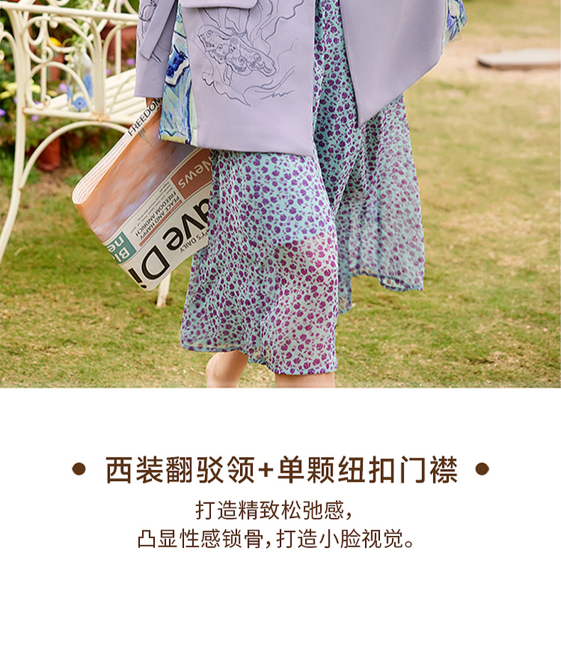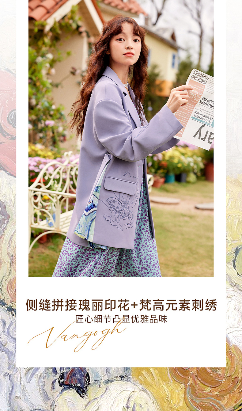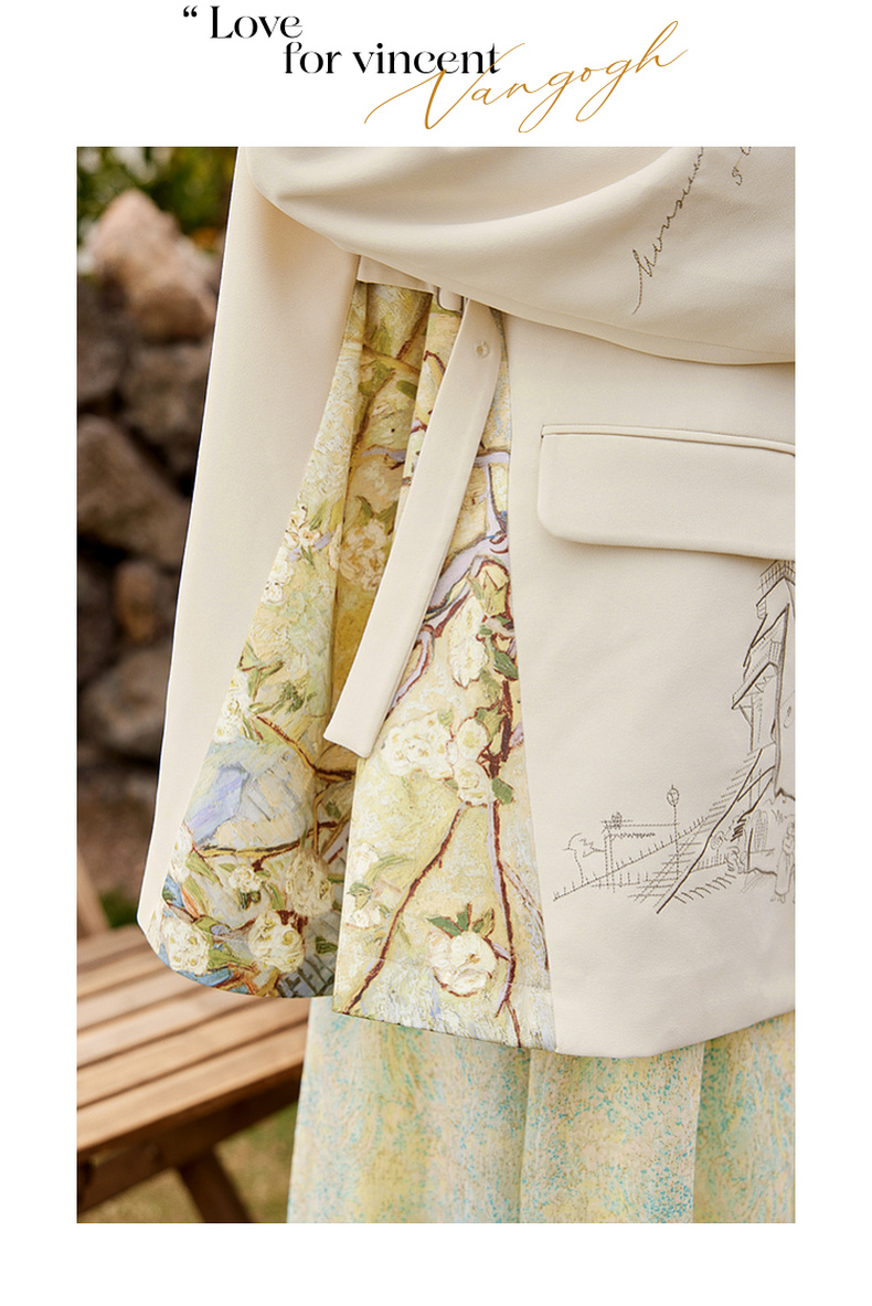 梵高艺术雌念丛生2024春季新款简约时尚印花西装外套