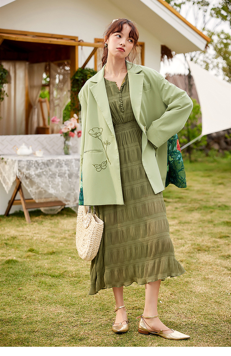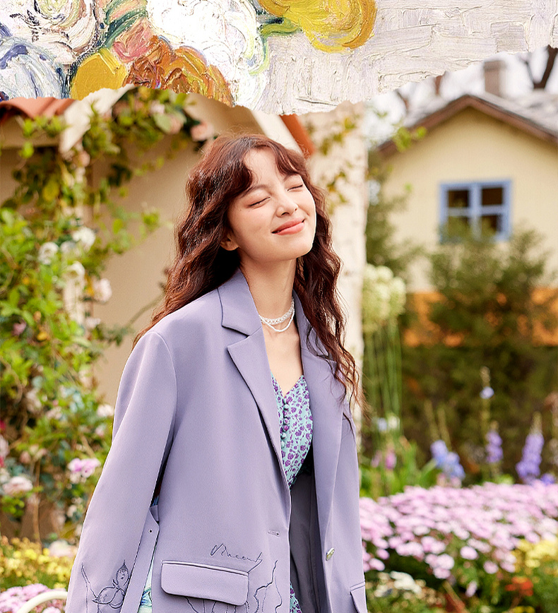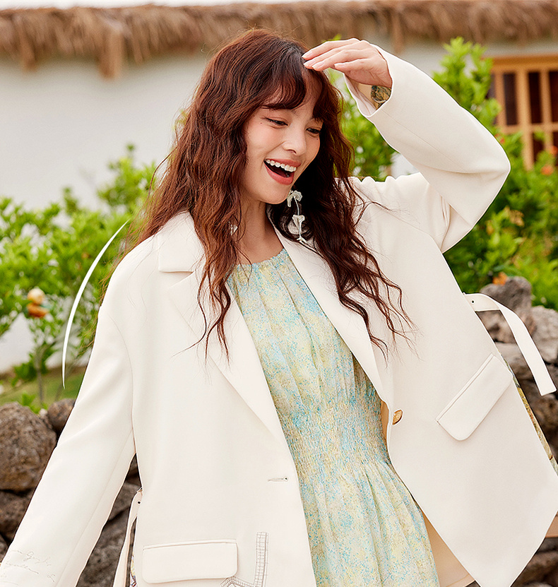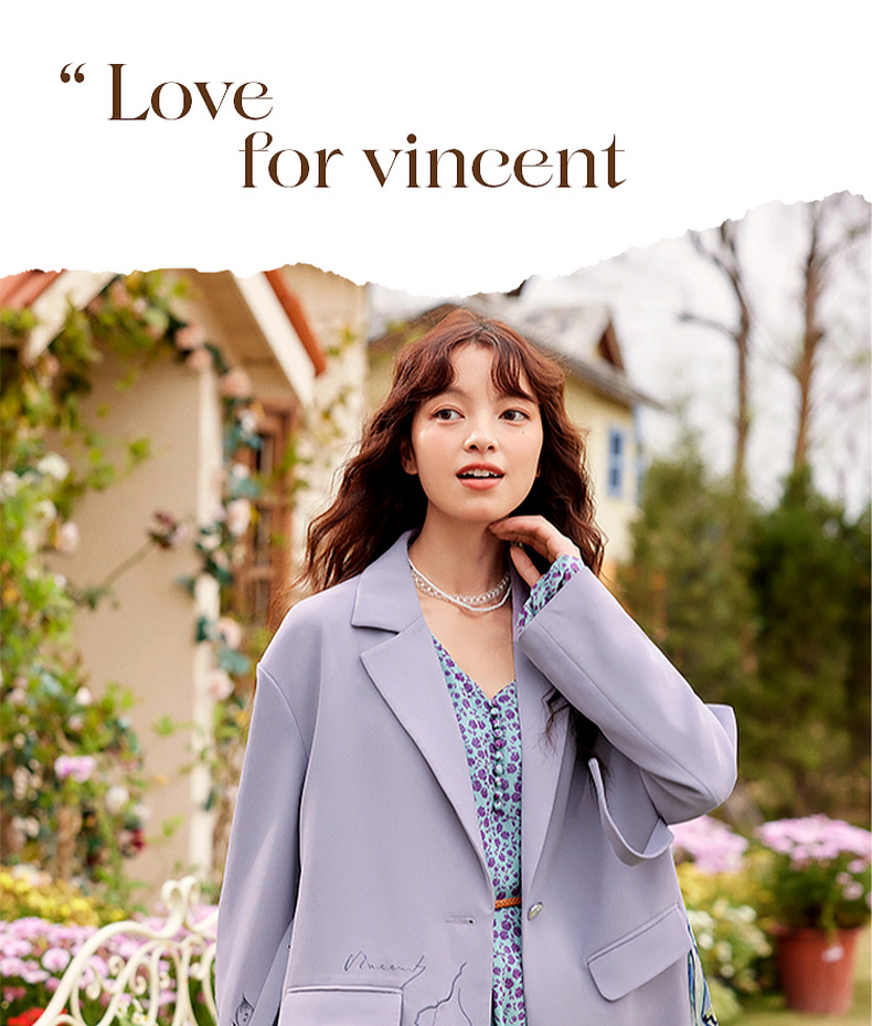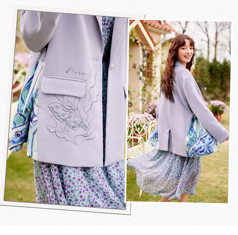 梵高艺术雌念丛生2024春季新款简约时尚印花西装外套