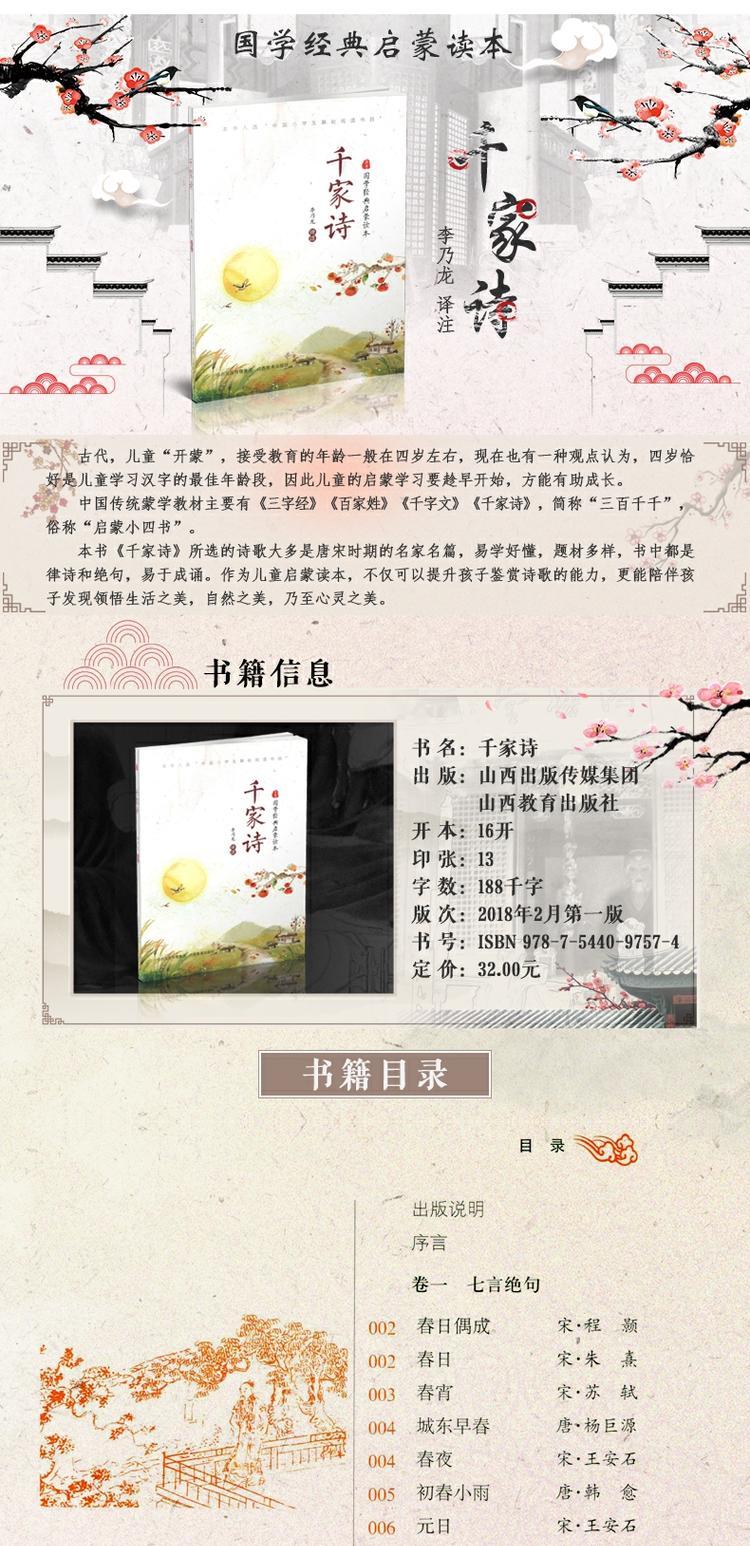 正版 千家诗 国学经典启蒙读本 中国小学生基础阅读书目 古代蒙学教材