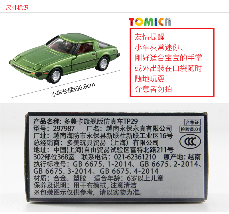 多美卡 旗舰版仿真车 TP29 马自达RX-7跑车 车长约6.8cm 跳灯/两侧门可开关