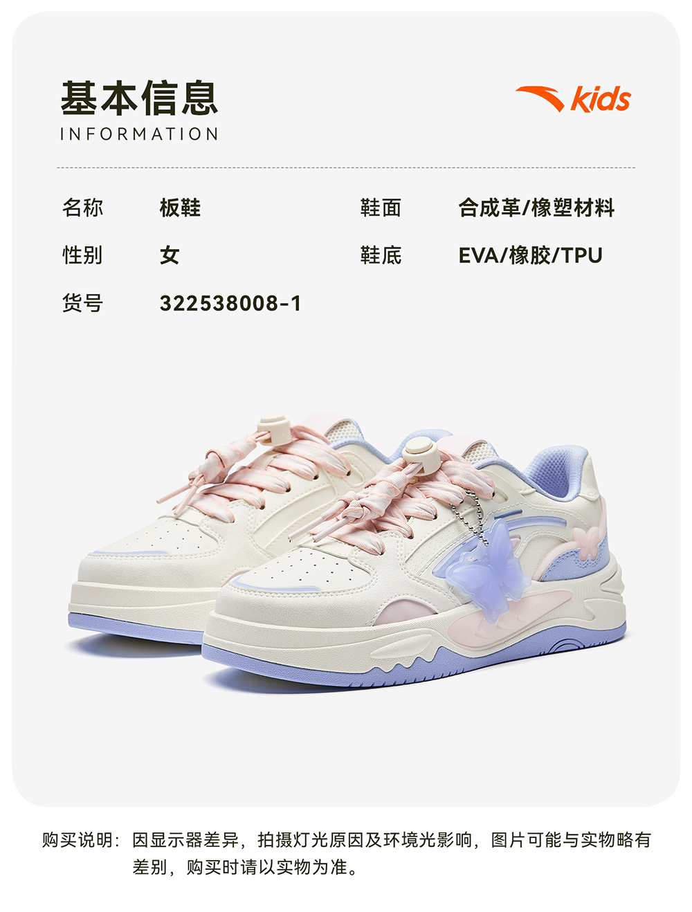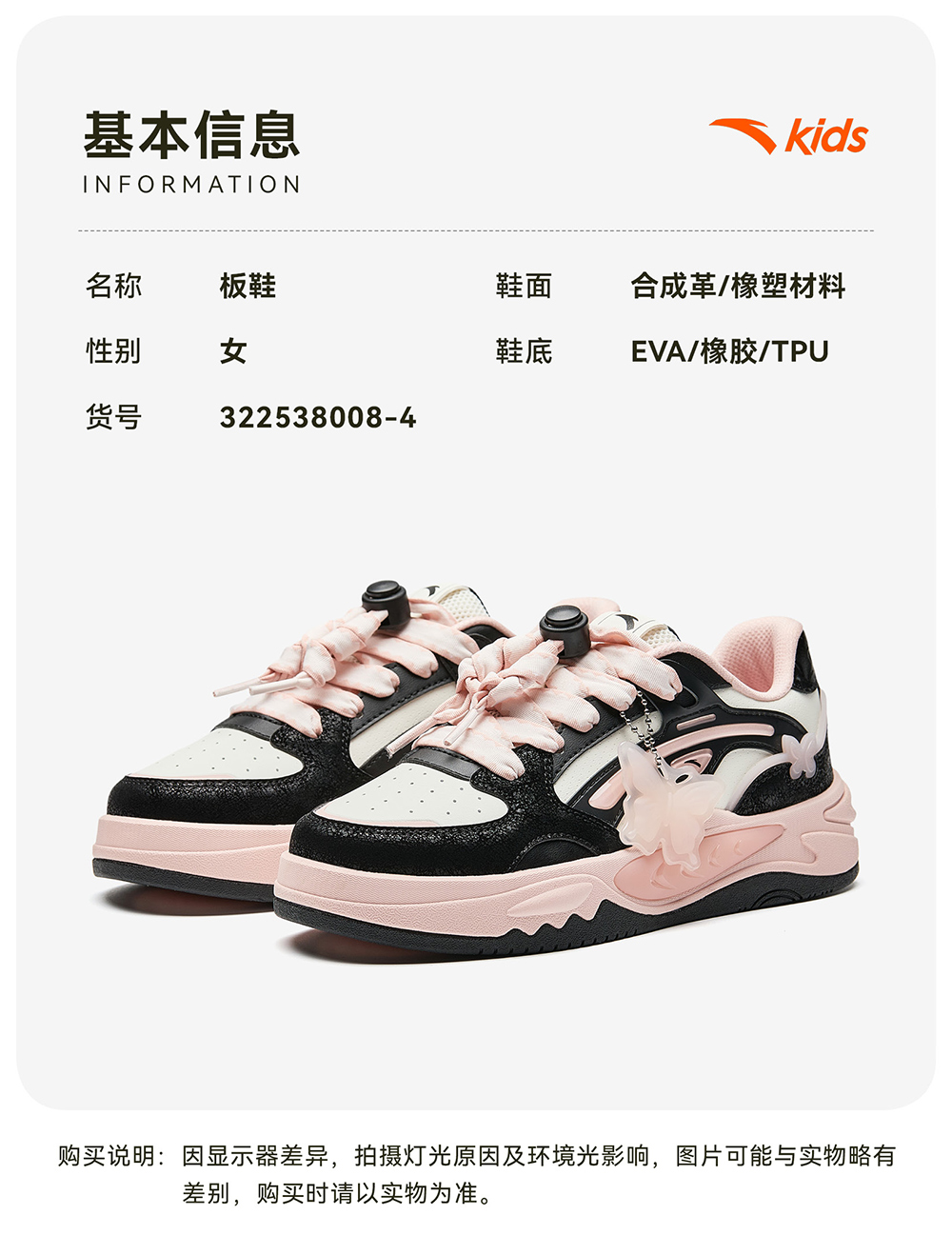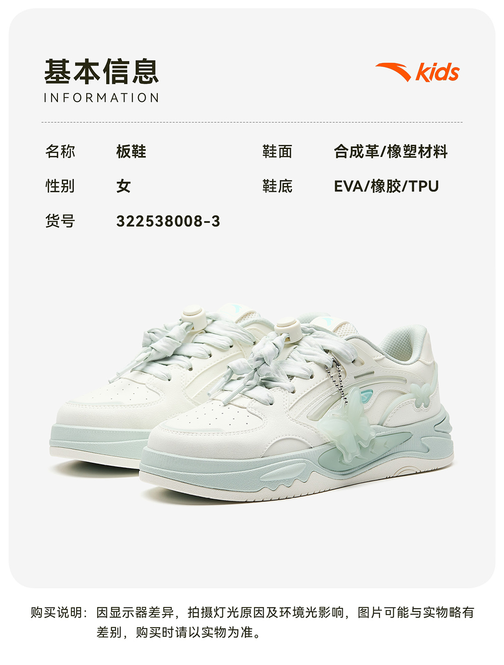 安踏儿童女大童板鞋2025秋季新款舒适防滑耐磨中大童低帮海豚鞋潮322538008