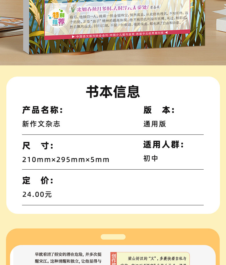 新作文初中版杂志【全年/半年订阅】2026年语文期刊年级文学阅读热点时文满分作文