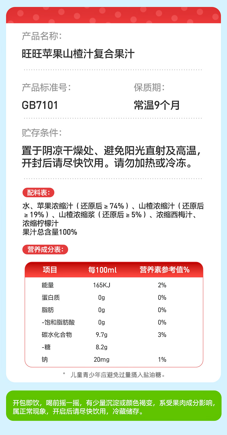 旺旺复合果汁饮料 整提100ml*13